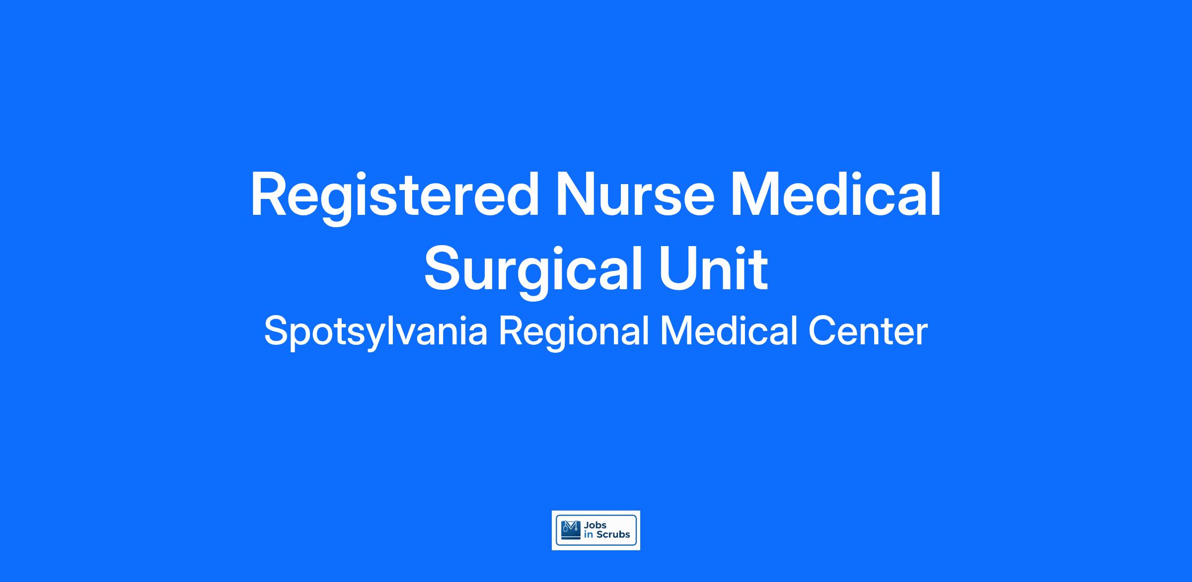 Do you have the career opportunities as a Registered Nurse Medical Surgical Unit you want in your current role? We invest in what matters most to nurses like you – at home, at work, and at every stage in your career. We have an exciting opportunity for you to join Spotsylvania Regional Medical Center which is a part of the nation’s leading provider of healthcare services, HCA Healthcare.