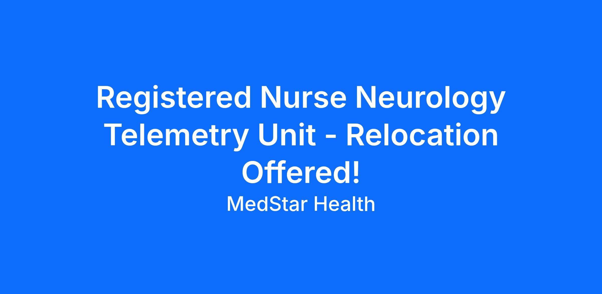 This RN position is for Full Time Days on the Neuro Telemetry unit at MedStar Franklin Square Medical Center.