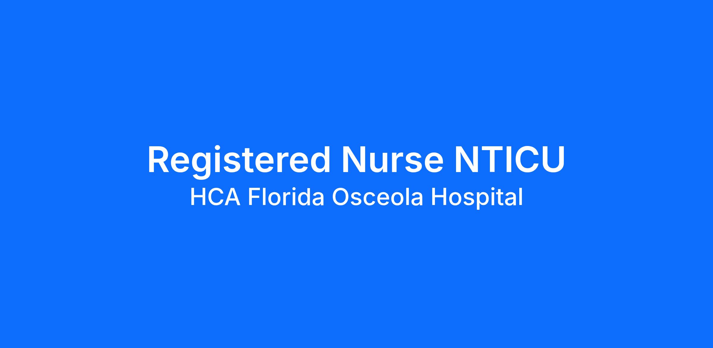 Are you passionate about the patient experience? At HCA Healthcare, we are committed to caring for patients with purpose and integrity. We care like family! Jump-start your career as a(an) Registered Nurse NTICU today with HCA Florida Osceola Hospital.