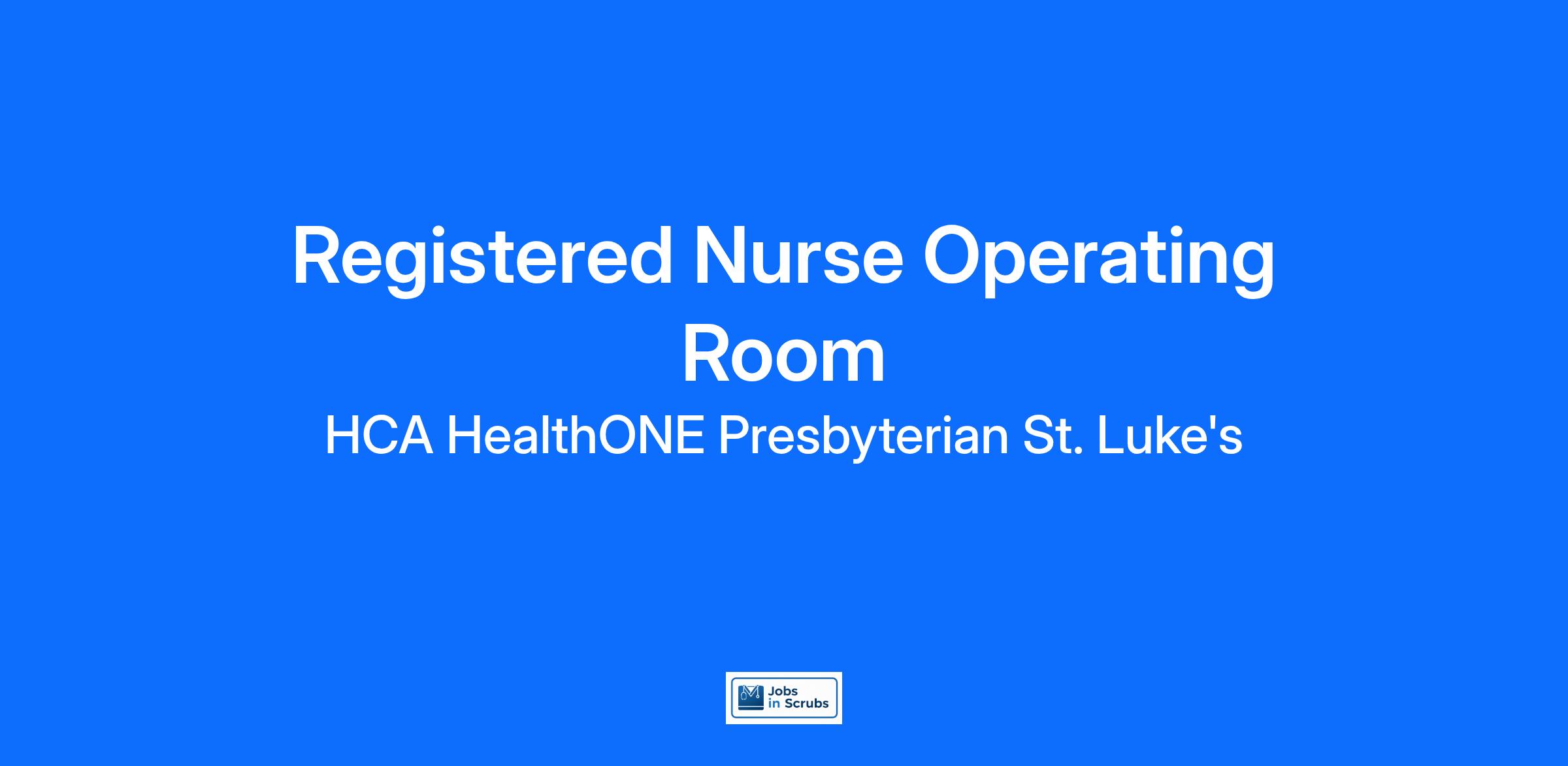 Do you currently have an opportunity to make a real impact with your work? With over 2,000 sites of care and serving over 31.2 million patient interactions every year, nurses at HCA HealthONE Presbyterian St. Luke's have the opportunity to make a real impact. As a(an) Registered Nurse Operating Room you can be a part of change.