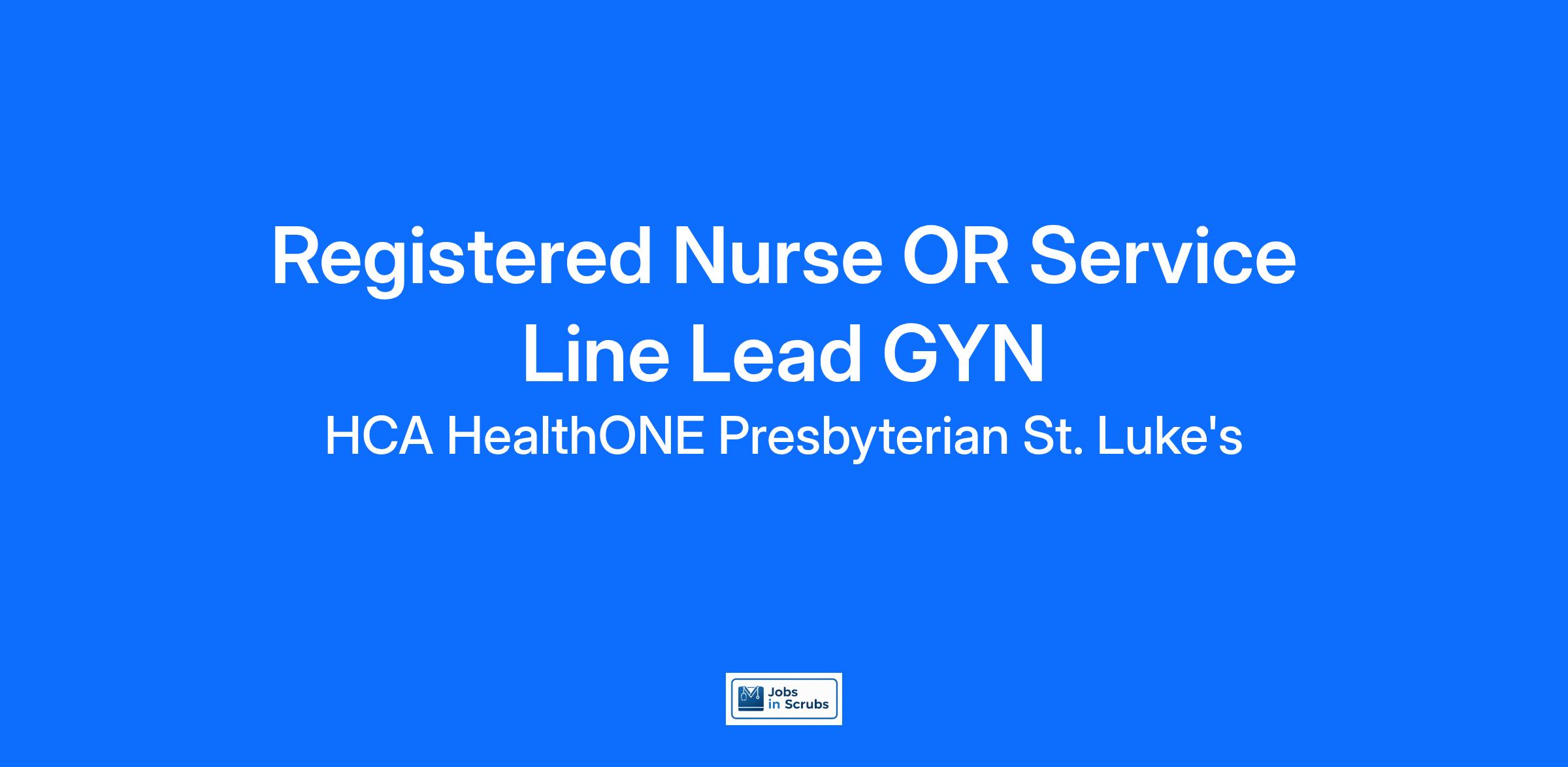 Do you currently have an opportunity to make a real impact with your work? With over 2,000 sites of care and serving over 31.2 million patient interactions every year, nurses at HCA HealthONE Presbyterian St. Luke's have the opportunity to make a real impact. As a(an) Registered Nurse OR Service Line Lead GYN you can be a part of change.