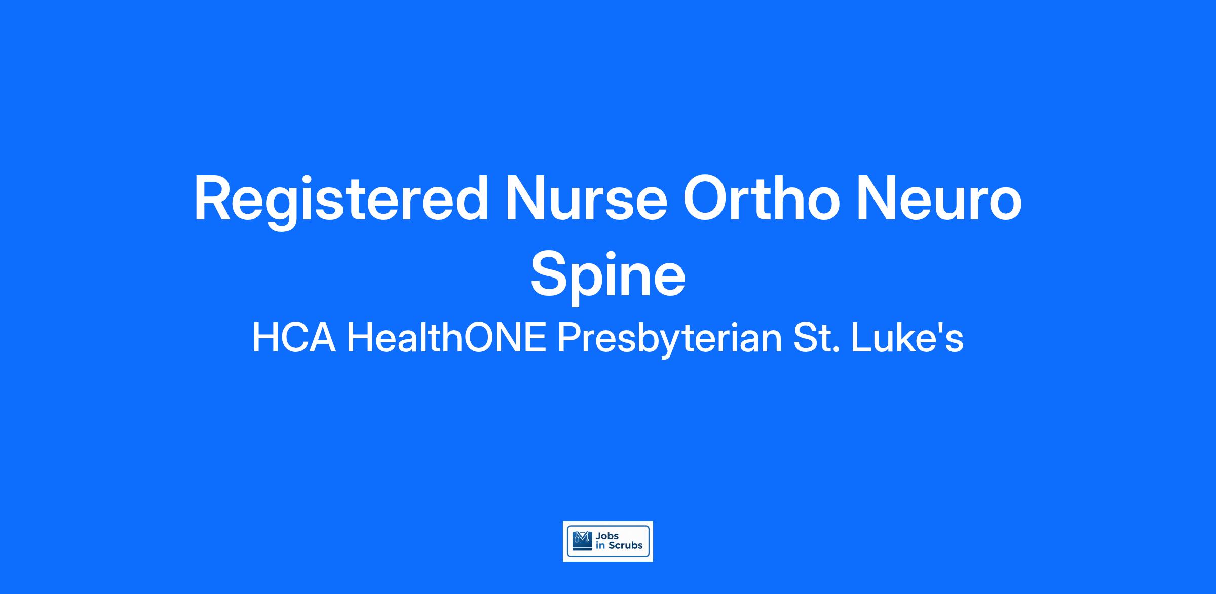 Do you currently have an opportunity to make a real impact with your work? With over 2,000 sites of care and serving over 31.2 million patient interactions every year, nurses at HCA HealthONE Presbyterian St. Luke's have the opportunity to make a real impact. As a(an) Registered Nurse Ortho Neuro Spine you can be a part of change.