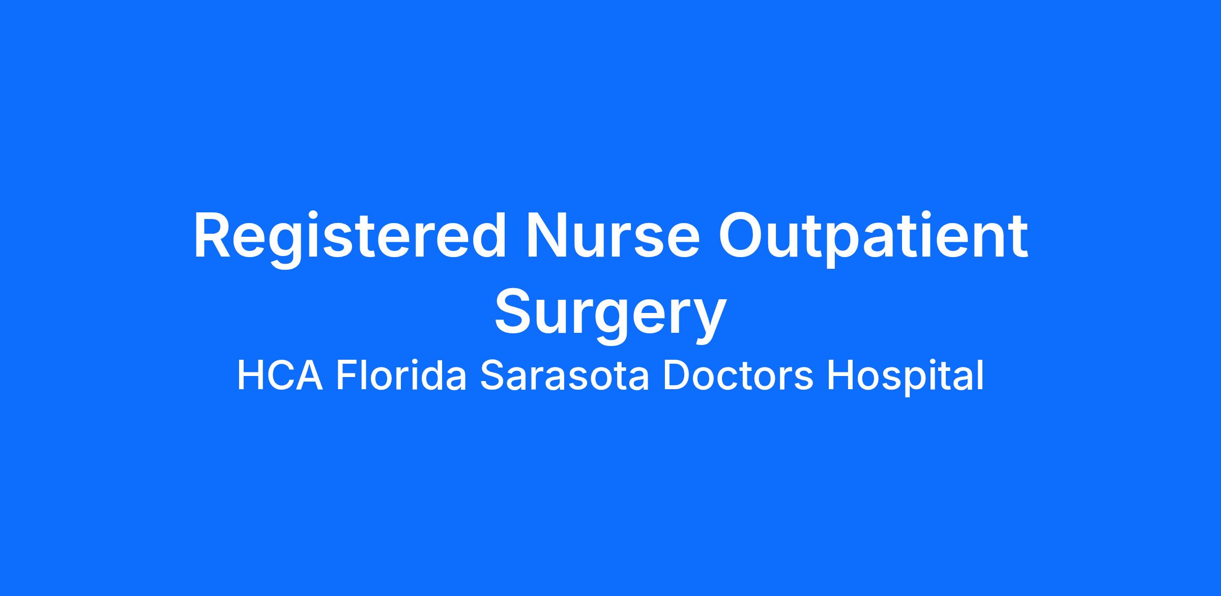 Do you want to join an organization that invests in you as a Registered Nurse Outpatient Surgery? At HCA Florida Sarasota Doctors Hospital, you come first. HCA Healthcare has committed up to $300 million in programs to support our incredible team members over the course of three years.