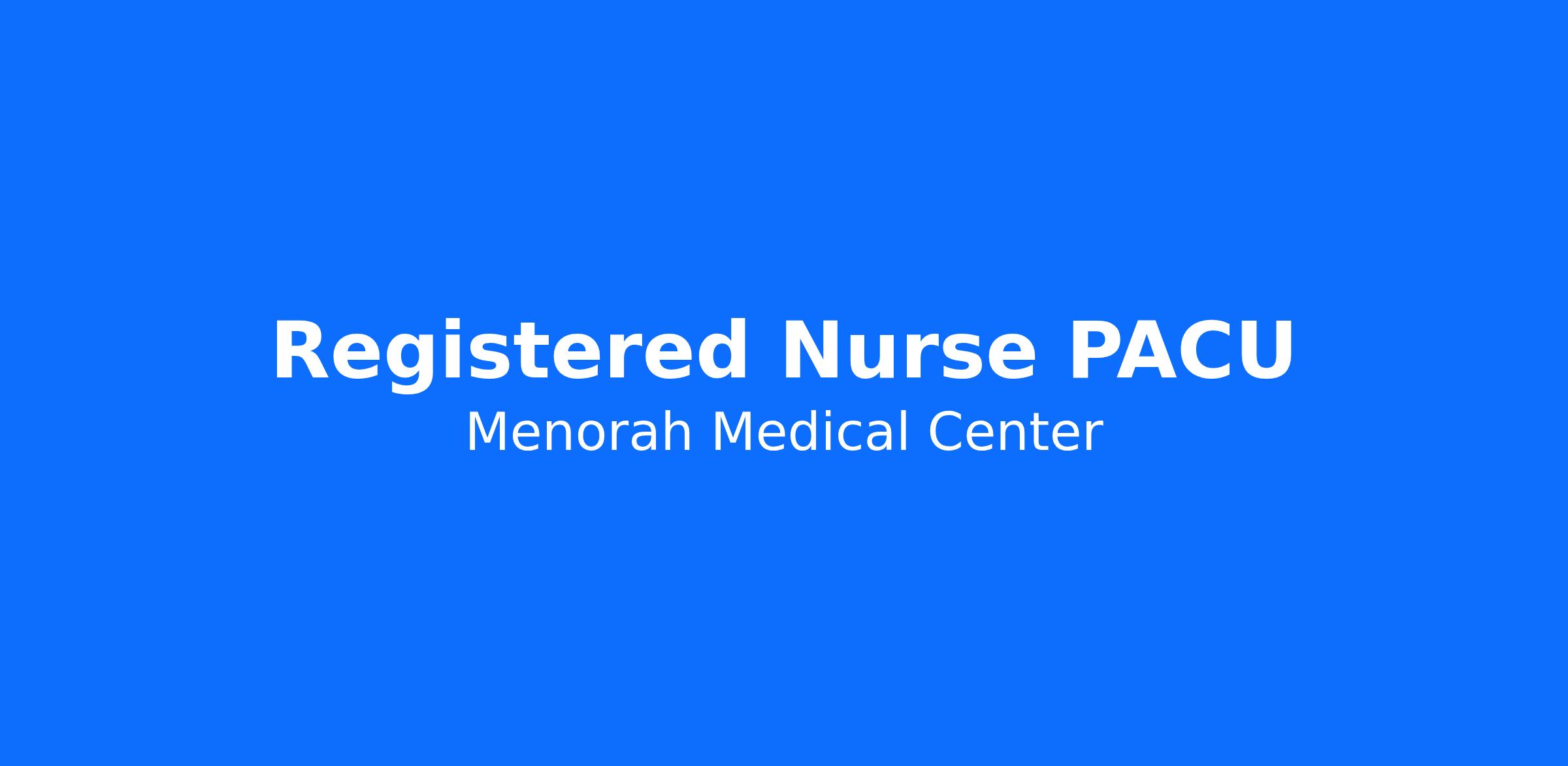 Do you have the career opportunities as a Registered Nurse PACU you want with your current employer? We have an exciting opportunity for you to join Menorah Medical Center which is part of the nation's leading provider of healthcare services, HCA Healthcare.