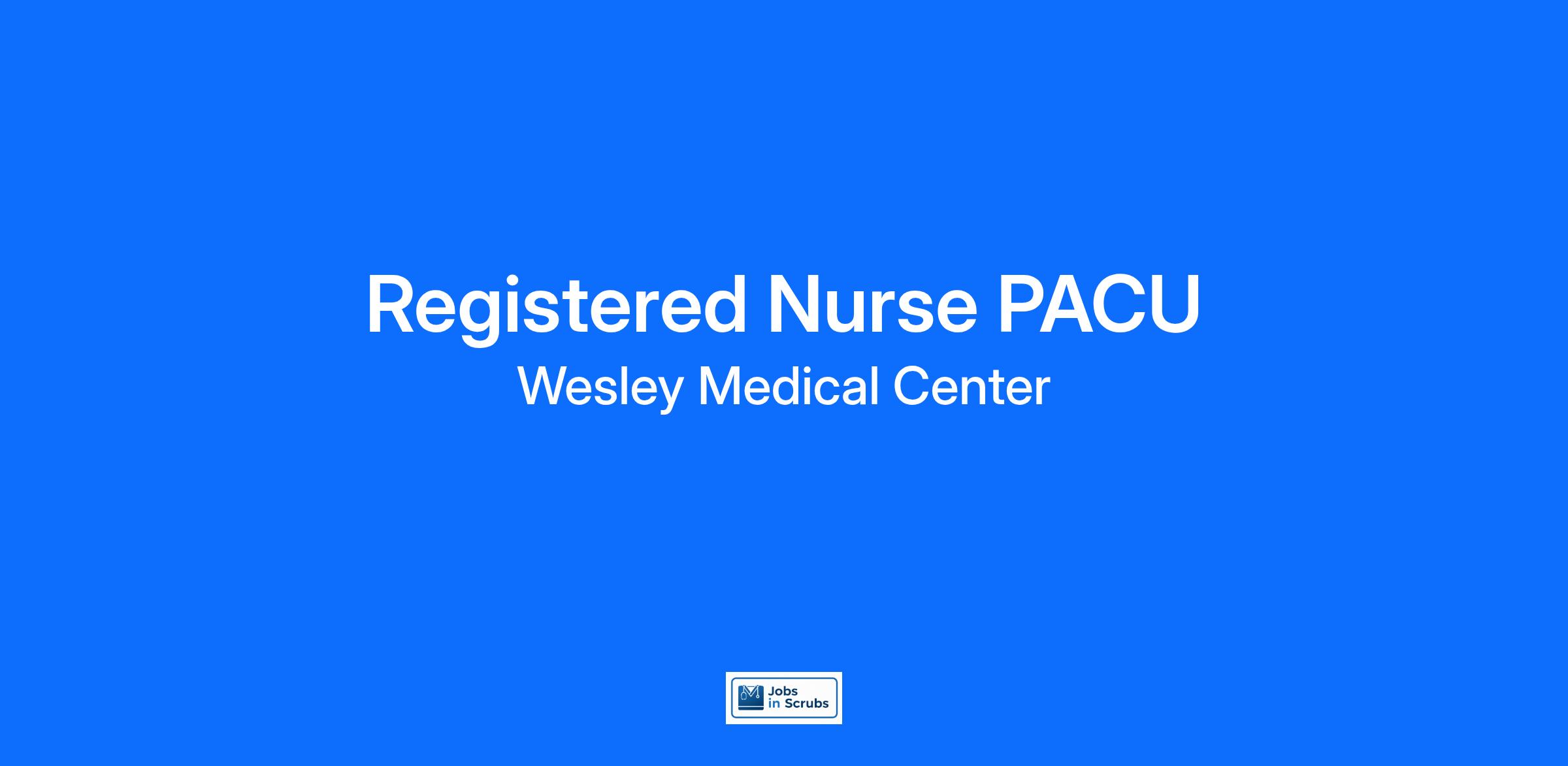 Experience the HCA Healthcare difference where colleagues are trusted, valued members of our healthcare team. Grow your career with an organization committed to delivering respectful, compassionate care, and where the unique and intrinsic worth of each individual is recognized. Submit your application for the opportunity below:Registered Nurse PACUWesley Medical Center