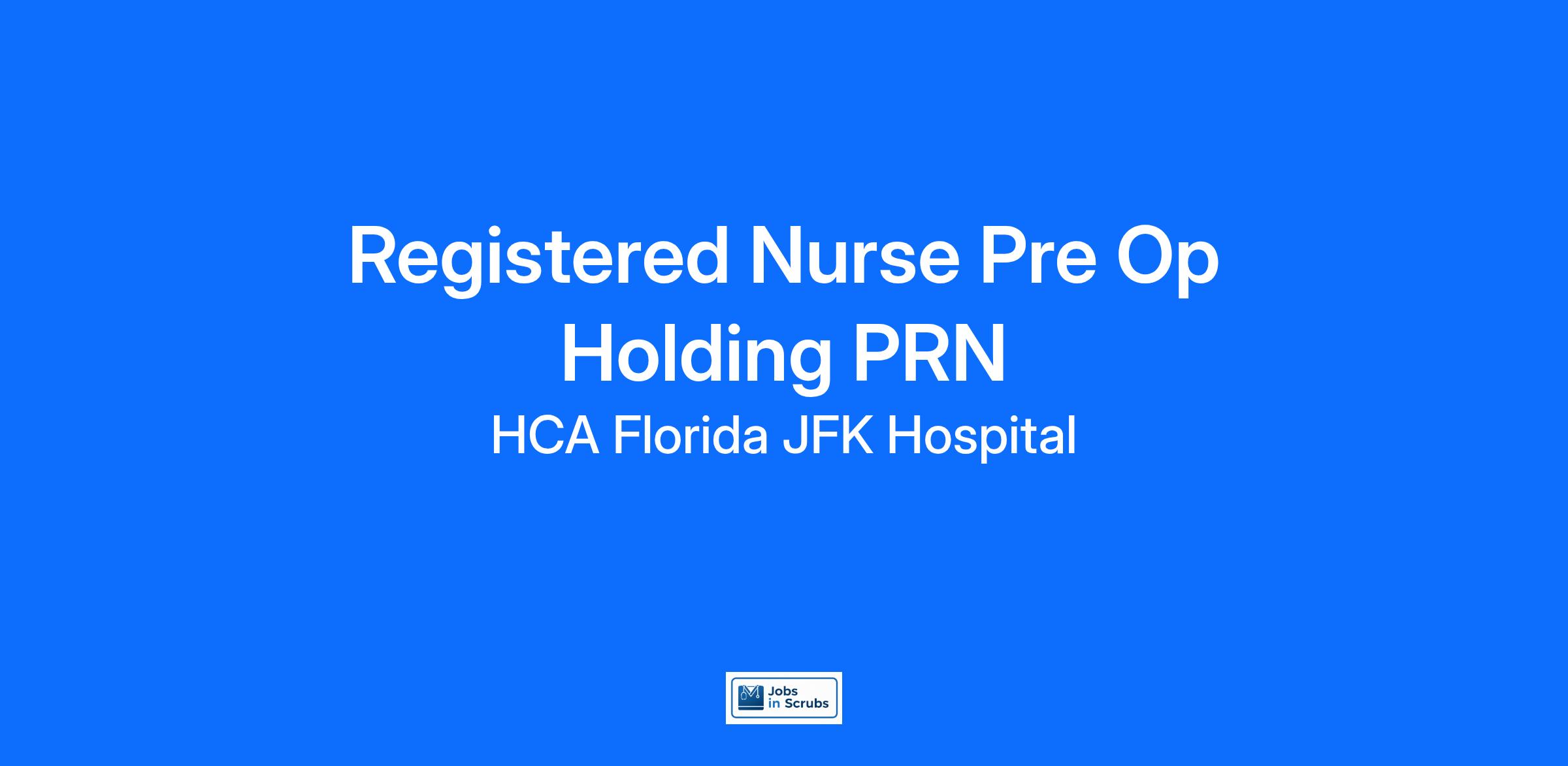 Do you want to be appreciated daily? Our nurses are celebrated for being on the front line, empathetic for patients. At HCA Florida JFK Hospital our nurses set us apart from any other healthcare provider. We are seeking a(an) Registered Nurse Pre Op Holding to join our healthcare family.