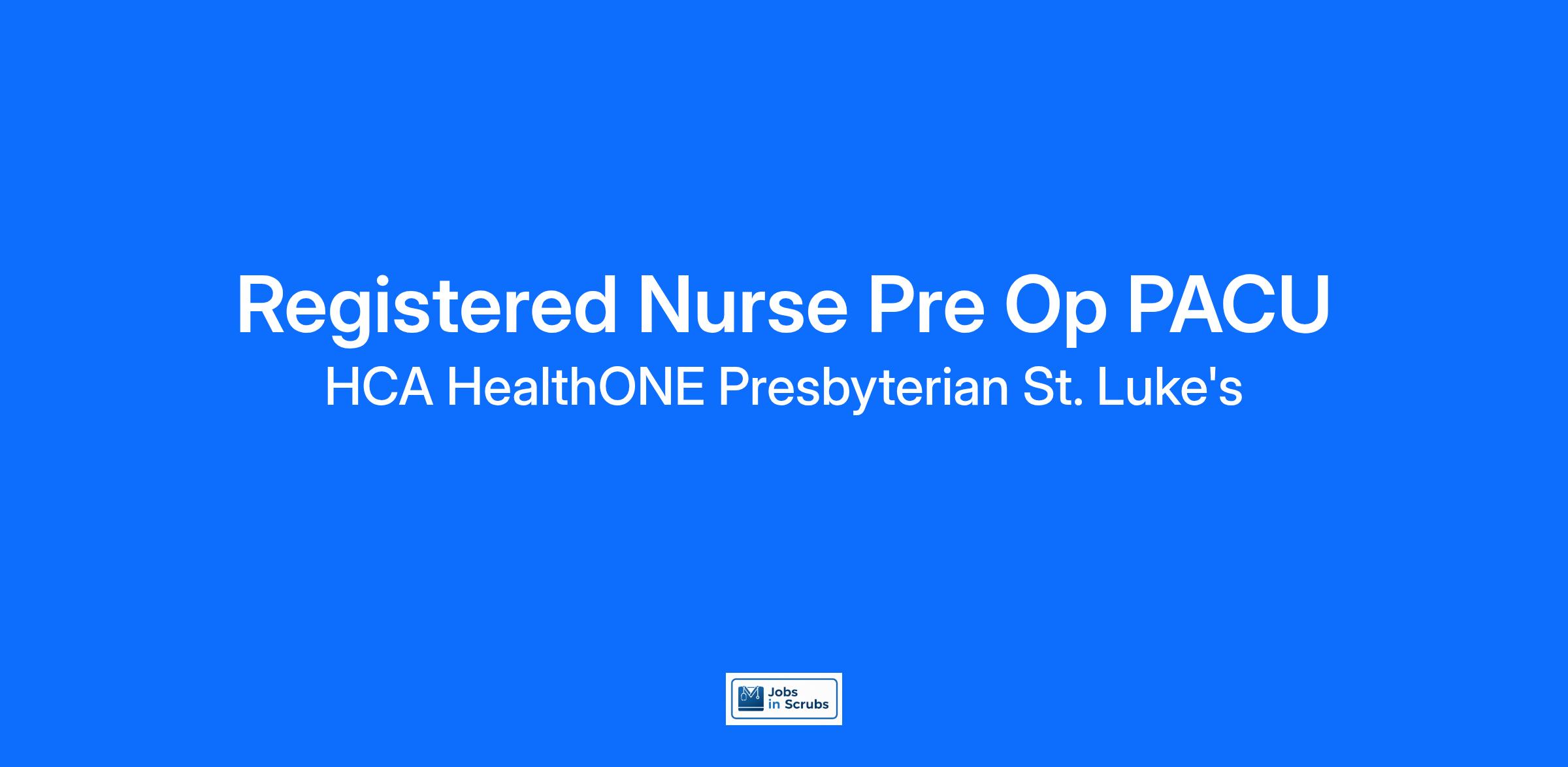 Do you currently have an opportunity to make a real impact with your work? With over 2,000 sites of care and serving over 31.2 million patient interactions every year, nurses at HCA HealthONE Presbyterian St. Luke's have the opportunity to make a real impact. As a(an) Registered Nurse Pre Op PACU you can be a part of change.