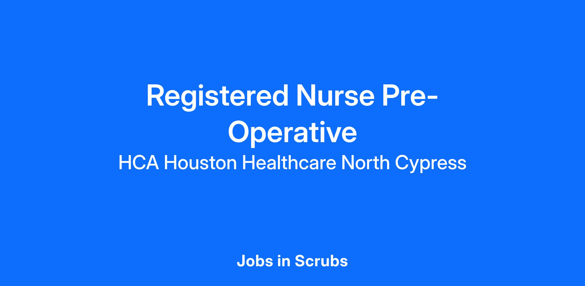 Are you looking for a place to deliver excellent care patients deserve? At HCA Houston Healthcare North Cypress we support our colleagues in their positions. Join our Team as a Registered Nurse Pre-Operative and access programs to assist with every stage of your career.