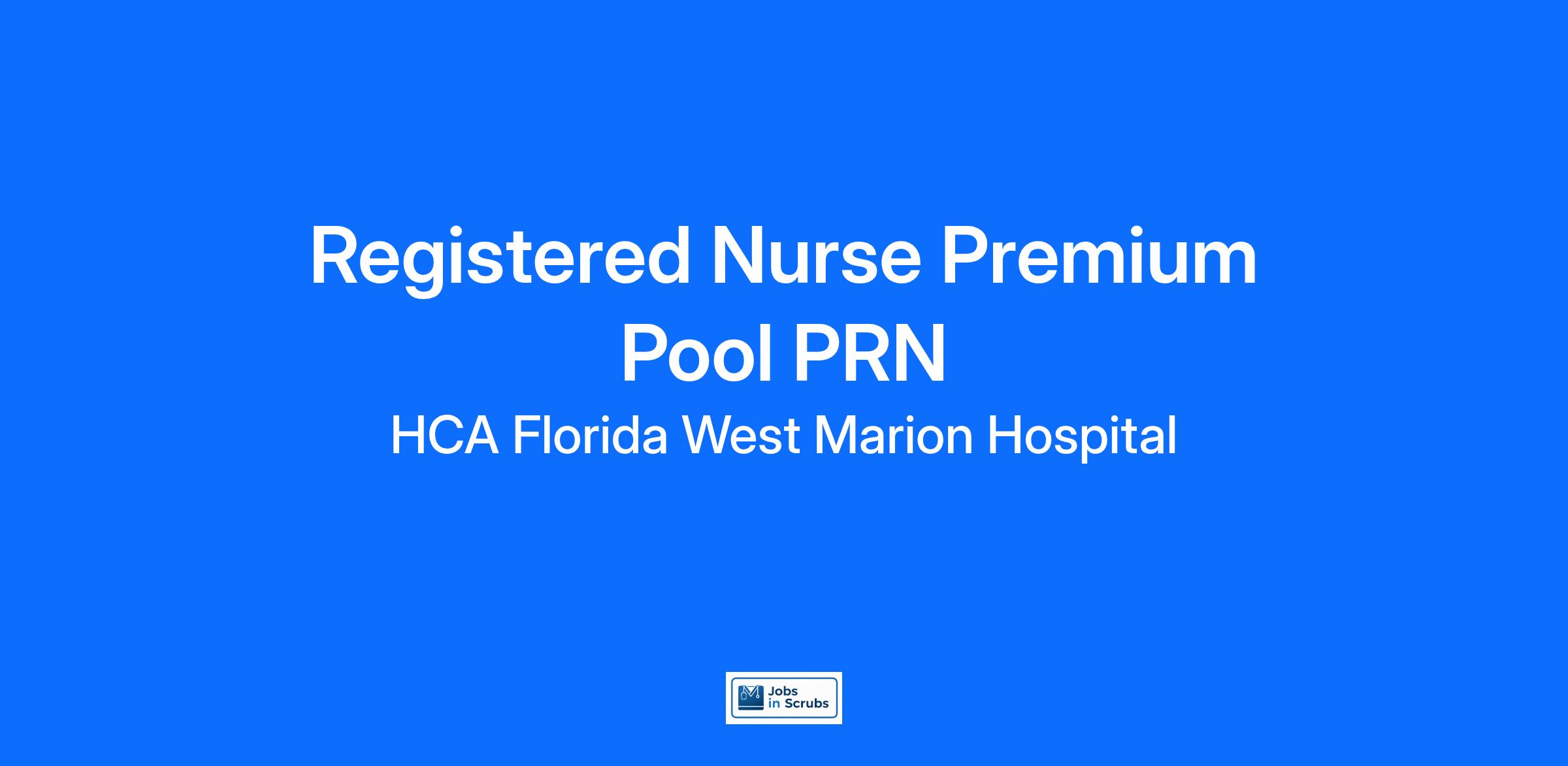 Are you looking for a place to deliver excellent care patients deserve? At HCA Florida West Marion Hospital we support our colleagues in their positions. Join our Team as a(an) Registered Nurse Premium Pool PRN and access programs to assist with every stage of your career.