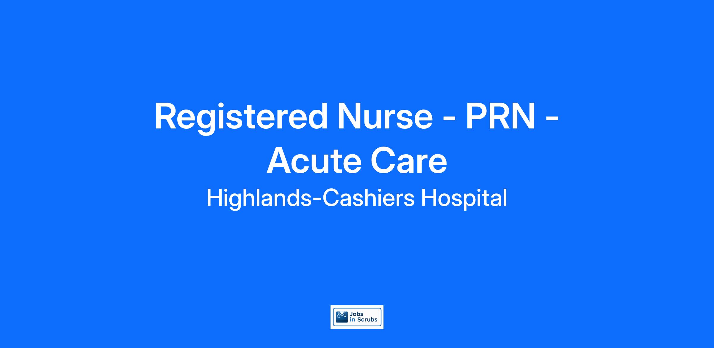 Do you have the PRN career opportunities you want with your current employer? We have an exciting opportunity for you to join Highlands-Cashiers Hospital which is part of the nation's leading provider of healthcare services, HCA Healthcare.