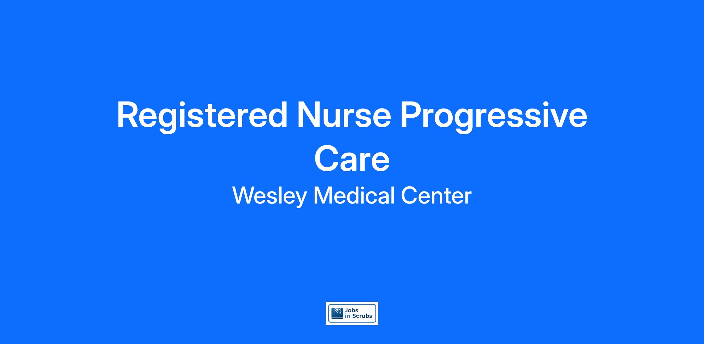 Do you currently have an opportunity to make a real impact with your work? With over 2,000 sites of care and serving over 31.2 million patient interactions every year, nurses at Wesley Medical Center have the opportunity to make a real impact. As a(an) Registered Nurse Progressive Care you can be a part of change.