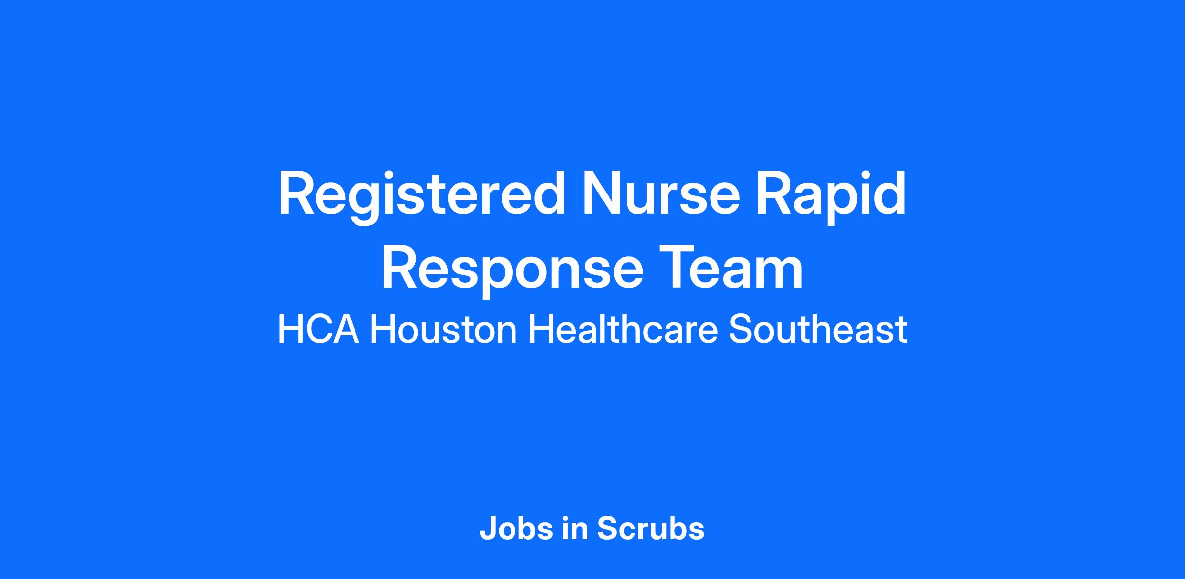 Do you want to be appreciated daily? Our nurses are celebrated for being on the front line, empathetic for patients. At HCA Houston Healthcare Southeast our nurses set us apart from any other healthcare provider. We are seeking a(an) Registered Nurse Rapid Response Team to join our healthcare family.
