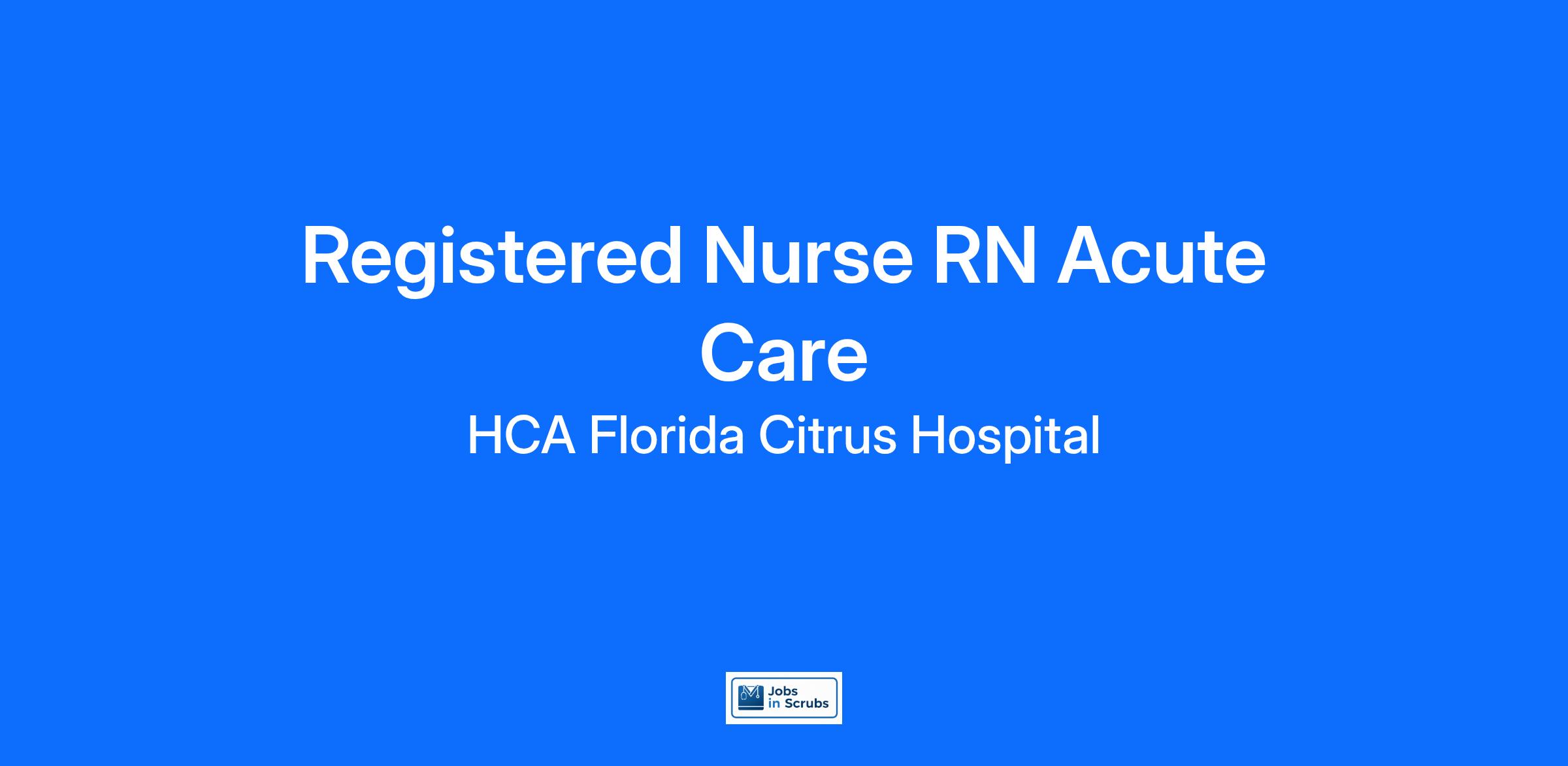 Do you have the career opportunities as a Registered Nurse that you want in your current role? We invest in what matters most to nurses like you – at home, at work, and at every stage in your career. We have an exciting opportunity for you to join HCA Florida Citrus Hospital which is a part of the nation’s leading provider of healthcare services, HCA Healthcare.
