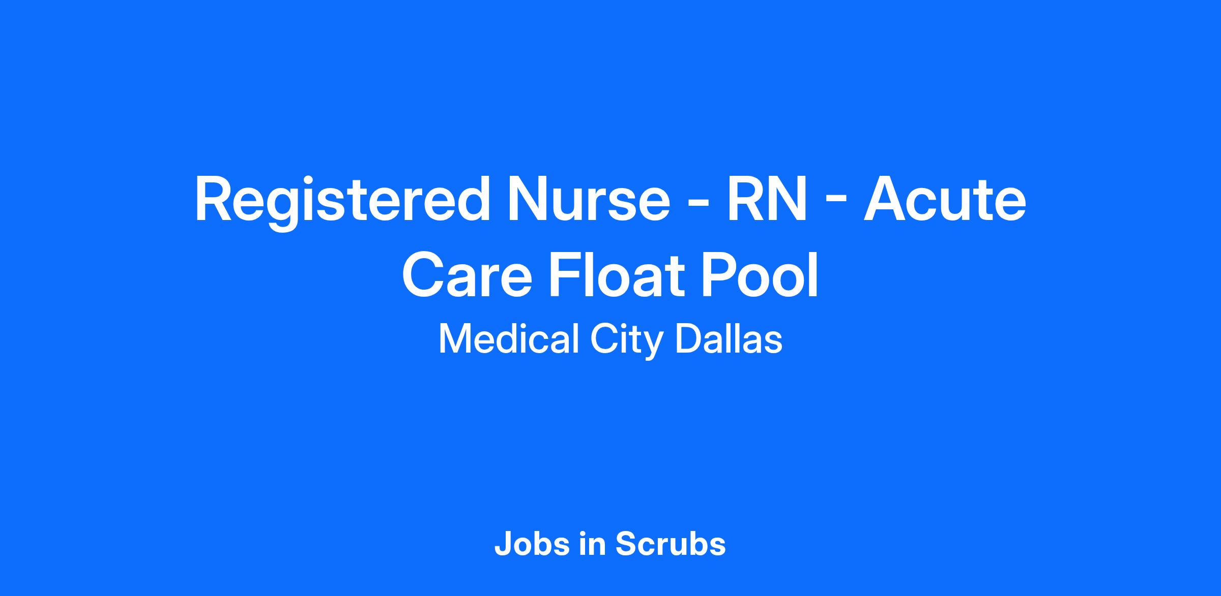 Are you passionate about the patient experience? At HCA Healthcare, we are committed to caring for patients with purpose and integrity. We care like family! Jump-start your career as a(an) Registered Nurse - RN - Float Pool - FT Days today with Medical City Dallas.