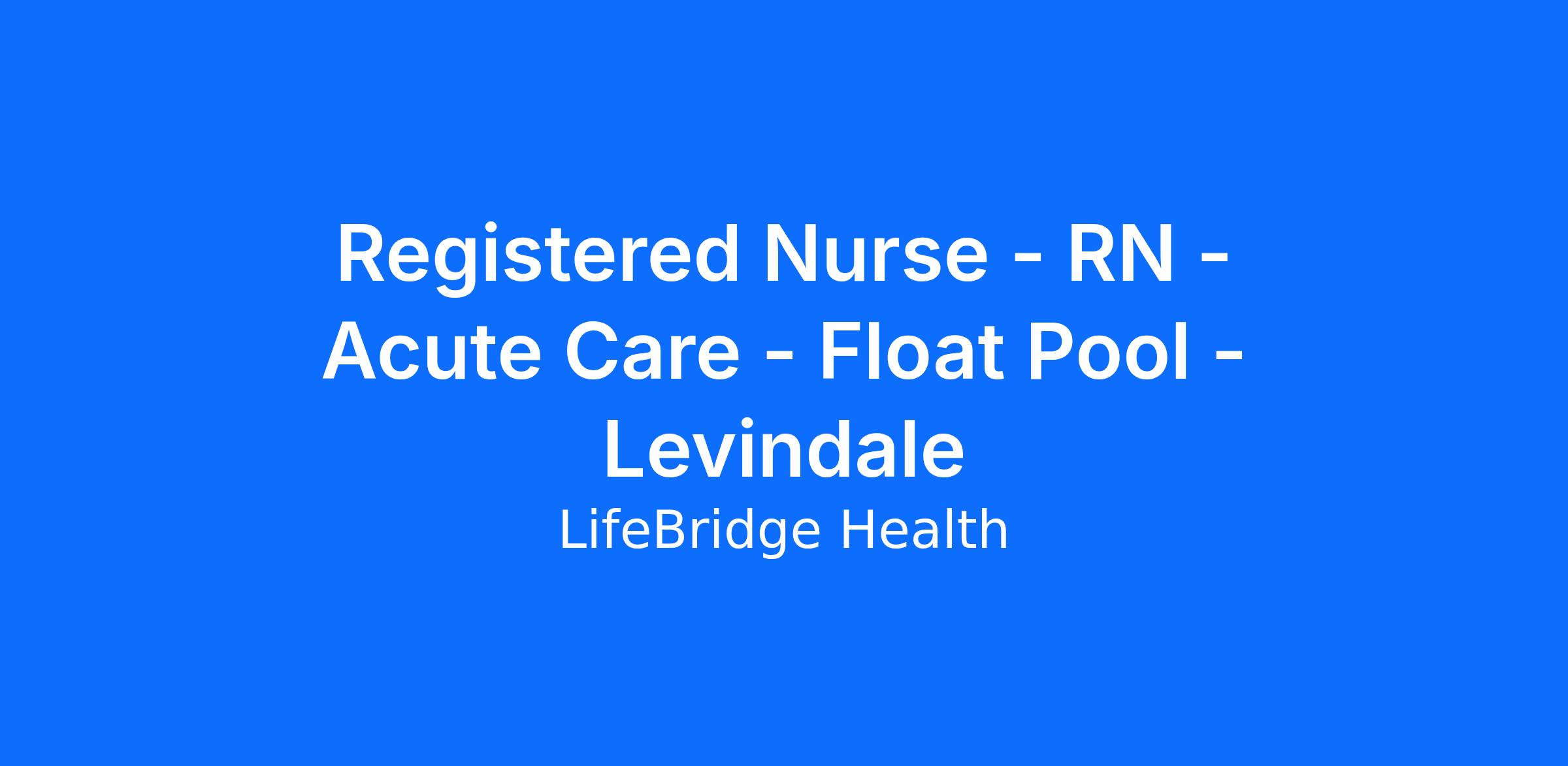 Registered Nurse - RN - Acute Care - Float Pool - Levindale