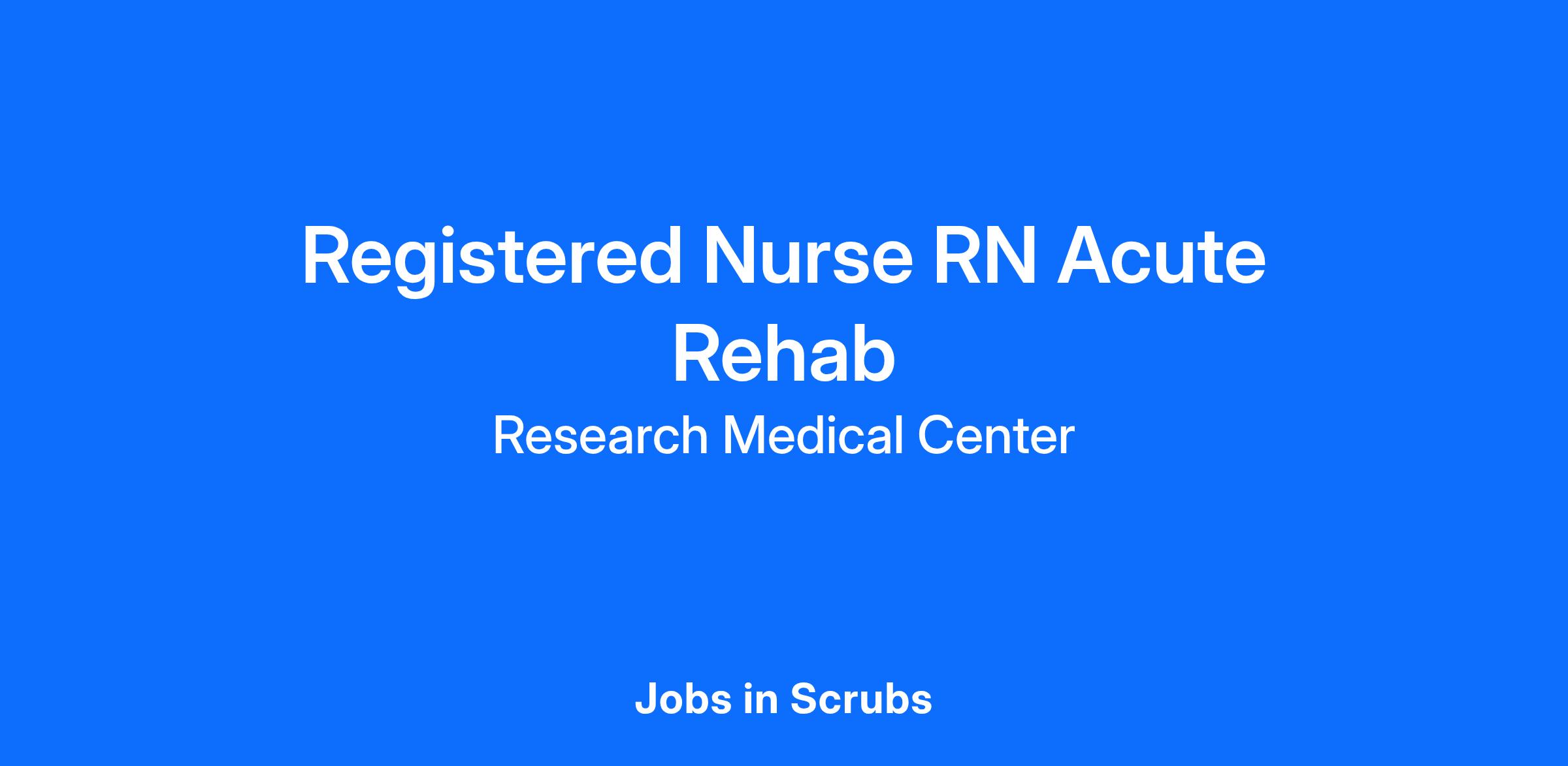 Research Medical Center is committed to investing in the latest technology enabling nurses to work more efficiently. Are you passionate about delivering patient-centered care? Submit your application for Registered Nurse RN Acute Rehab position and spend more time at the bedside with the patient.