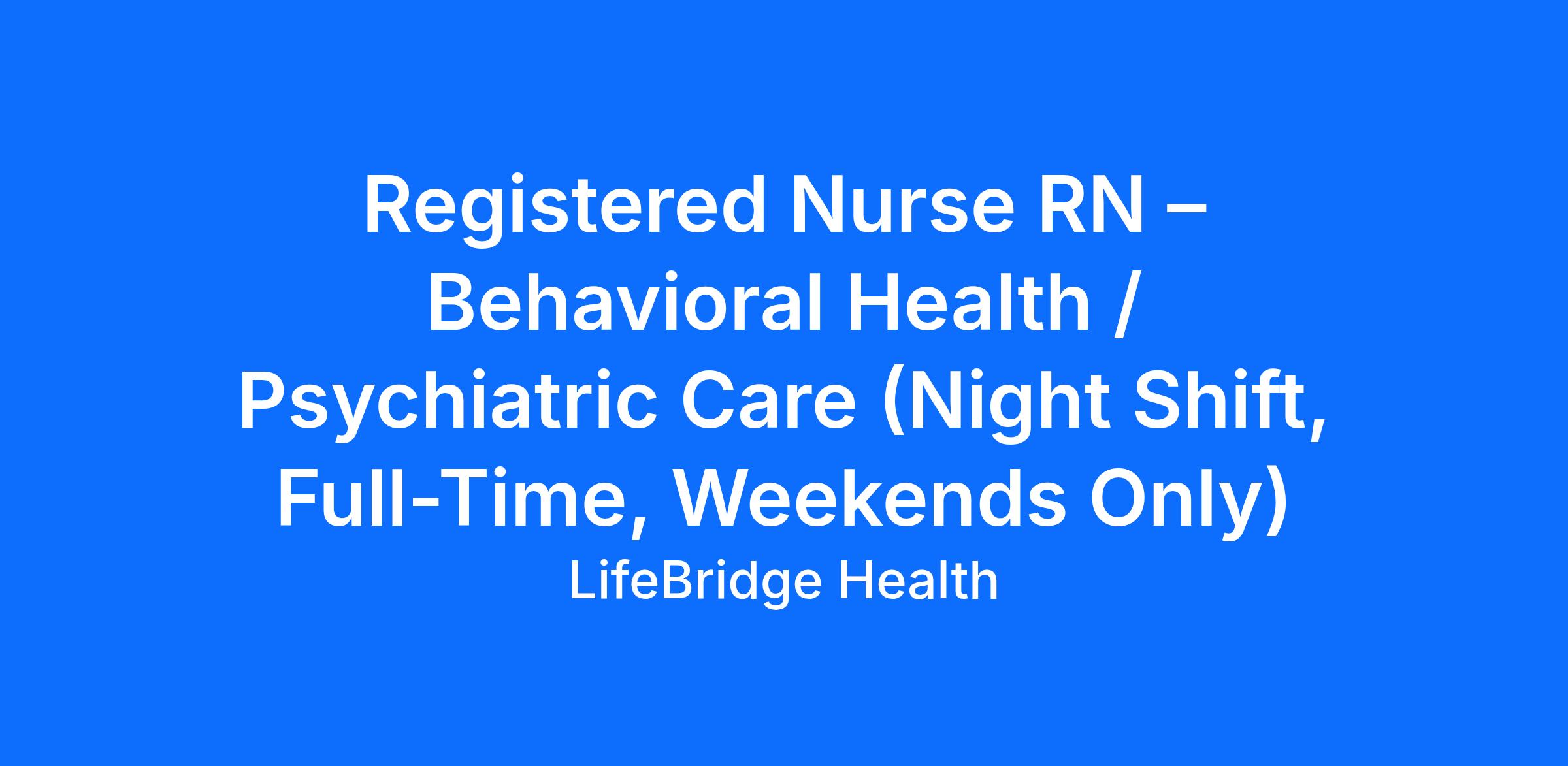 Registered Nurse, RN, Behavioral Health Nurse, Psychiatric Nurse, Mental Health RN, Emergency Psychiatric Nurse, ED RN, ER RN, Crisis Stabilization, Night Shift RN, Part-Time RN, Maryland RN Jobs