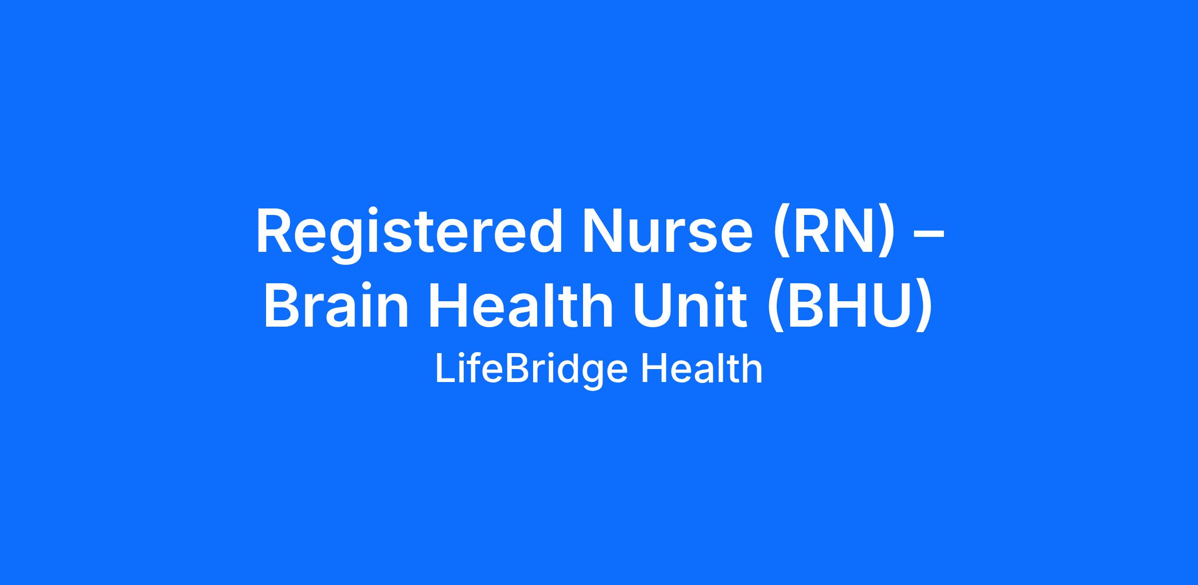 Registered Nurse (RN) – Brain Health Unit (BHU)