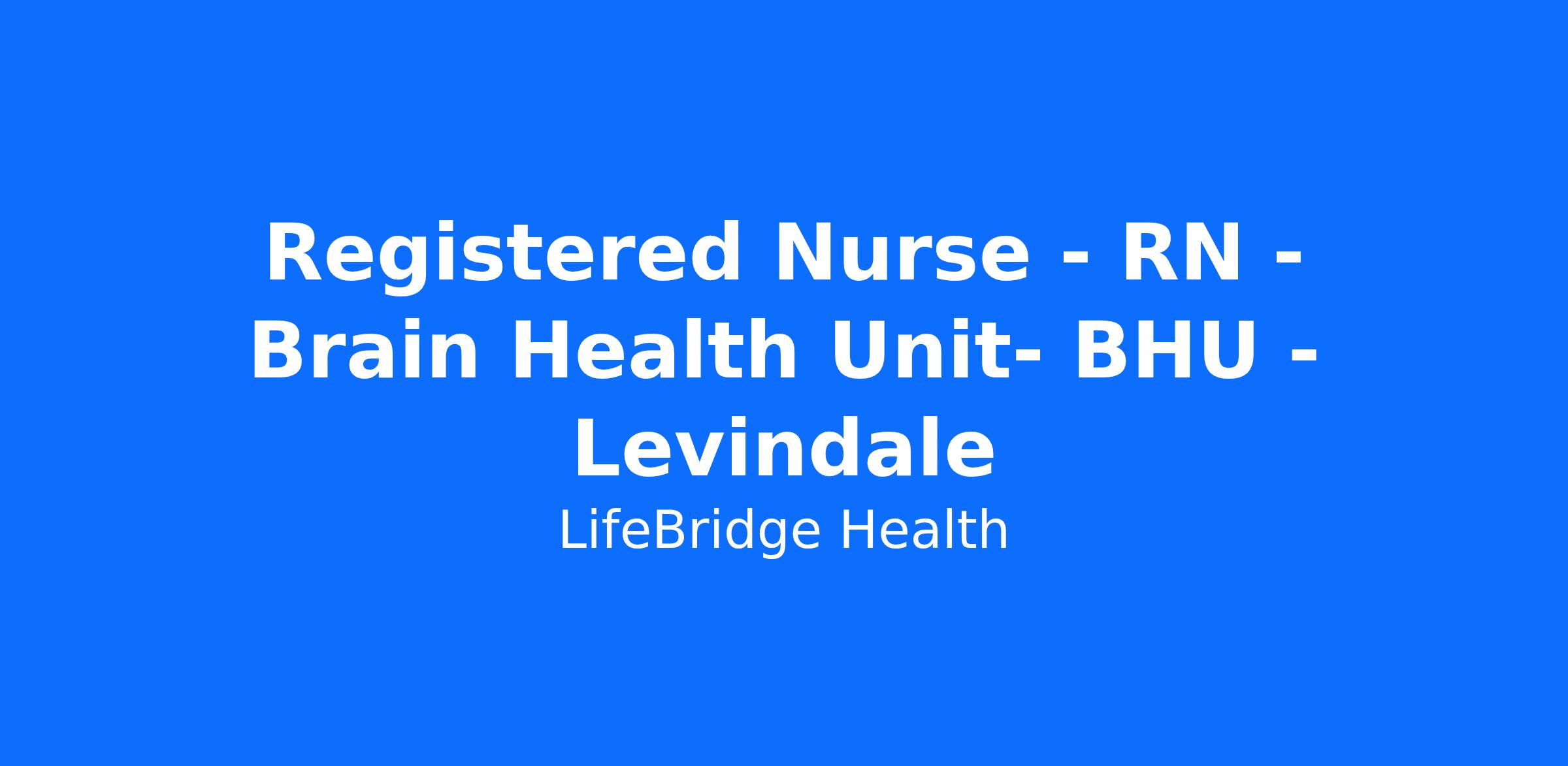 Registered Nurse - RN - Brain Health Unit- BHU - Levindale