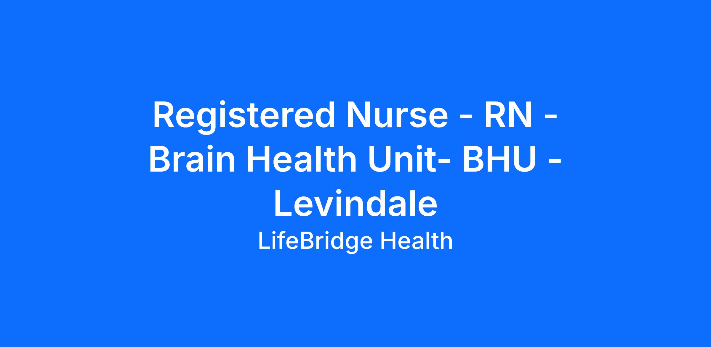 Registered Nurse - RN - Brain Health Unit- BHU - Levindale