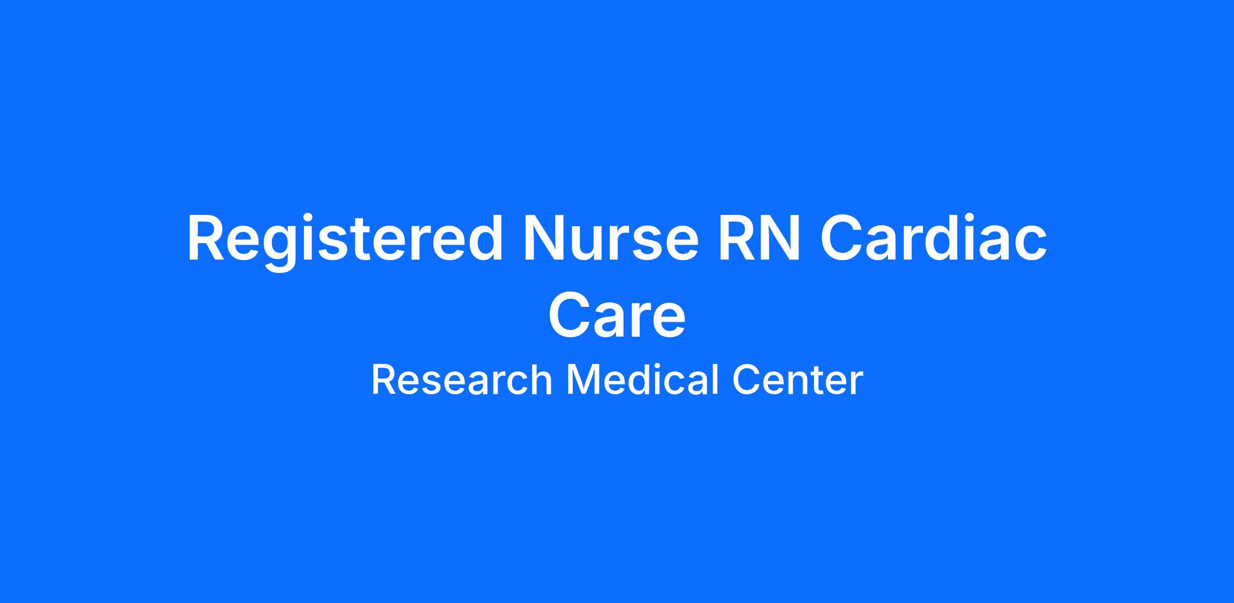 Are you looking for a place to deliver excellent care patients deserve? At Research Medical Center we support our colleagues in their positions. Join our Team as a(an) Registered Nurse RN Cardiac Care and access programs to assist with every stage of your career.