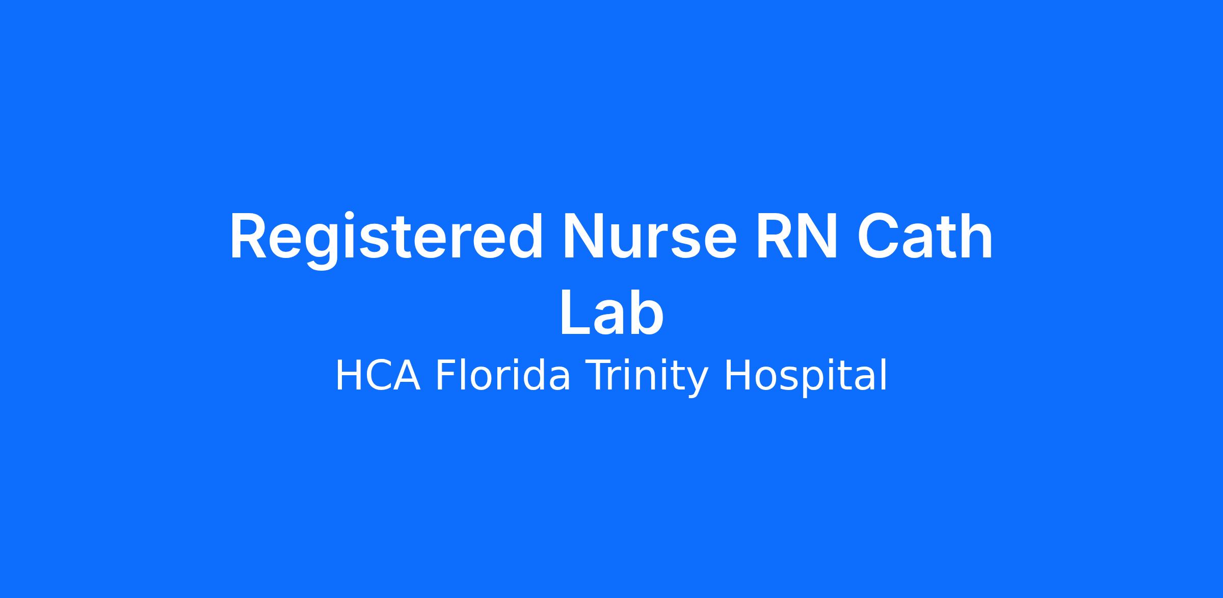 Are you looking for a place to deliver excellent care patients deserve? At HCA Florida Trinity Hospital we support our colleagues in their positions. Join our Team as a(an) Registered Nurse RN Cath Lab and access programs to assist with every stage of your career.