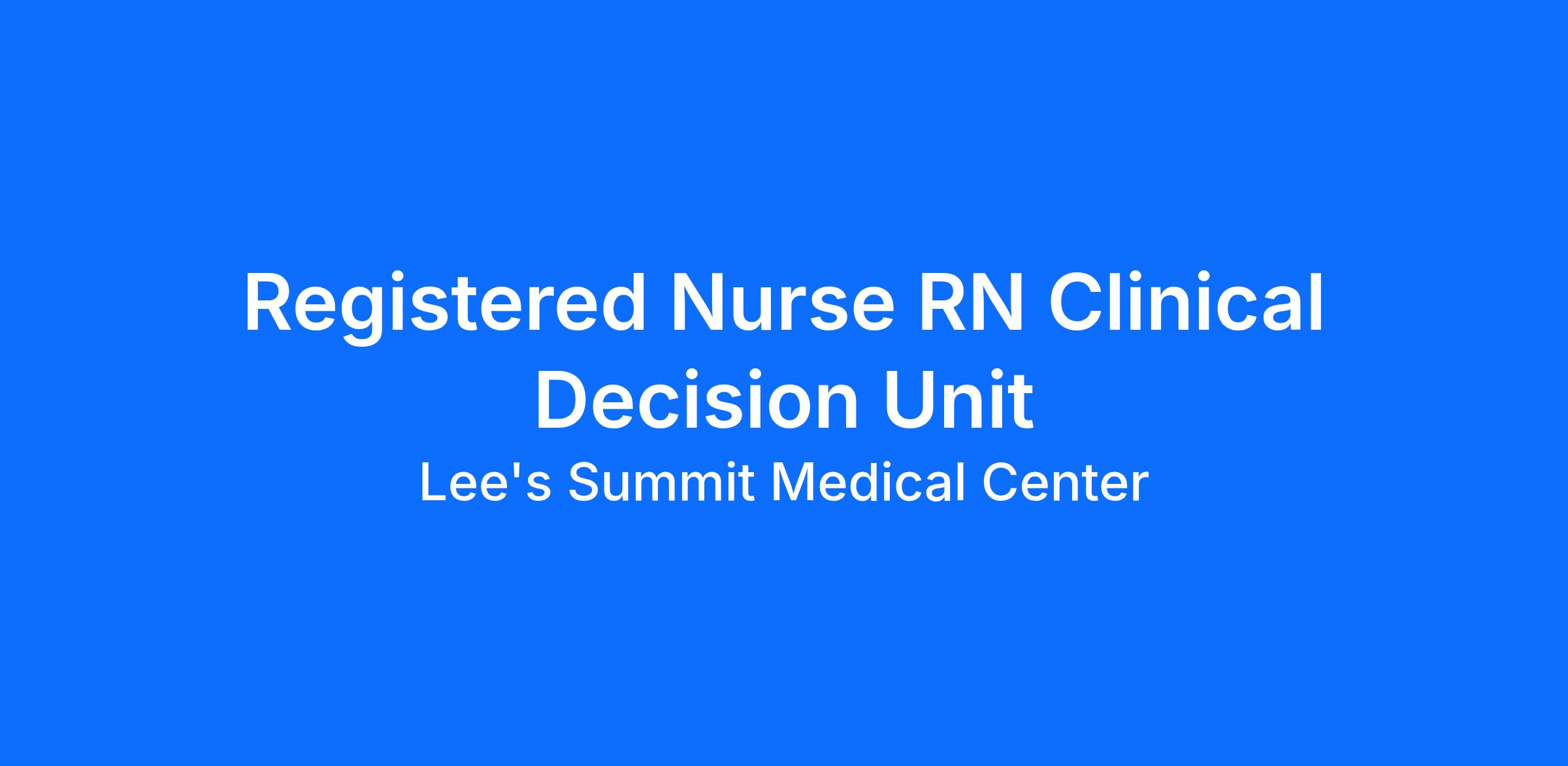 Last year our HCA Healthcare colleagues invested over 156,000 hours volunteering in our communities. As a(an) Registered Nurse RN Clinical Decision Unit with Lee's Summit Medical Center you can be a part of an organization that is devoted to giving back!