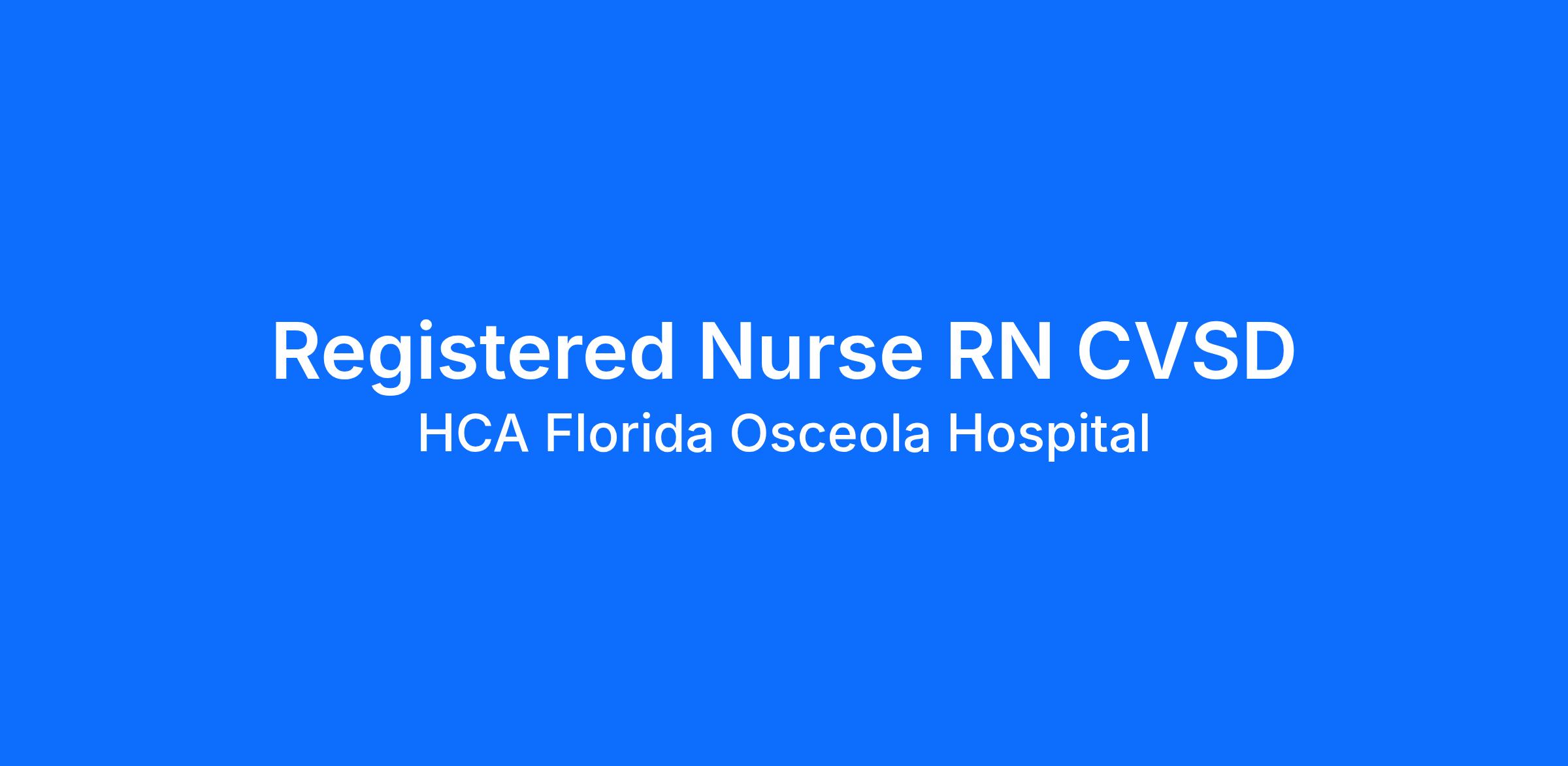 Do you have the career opportunities as a(an) Registered Nurse RN CVSD you want with your current employer? We have an exciting opportunity for you to join HCA Florida Osceola Hospital which is part of the nation's leading provider of healthcare services, HCA Healthcare.