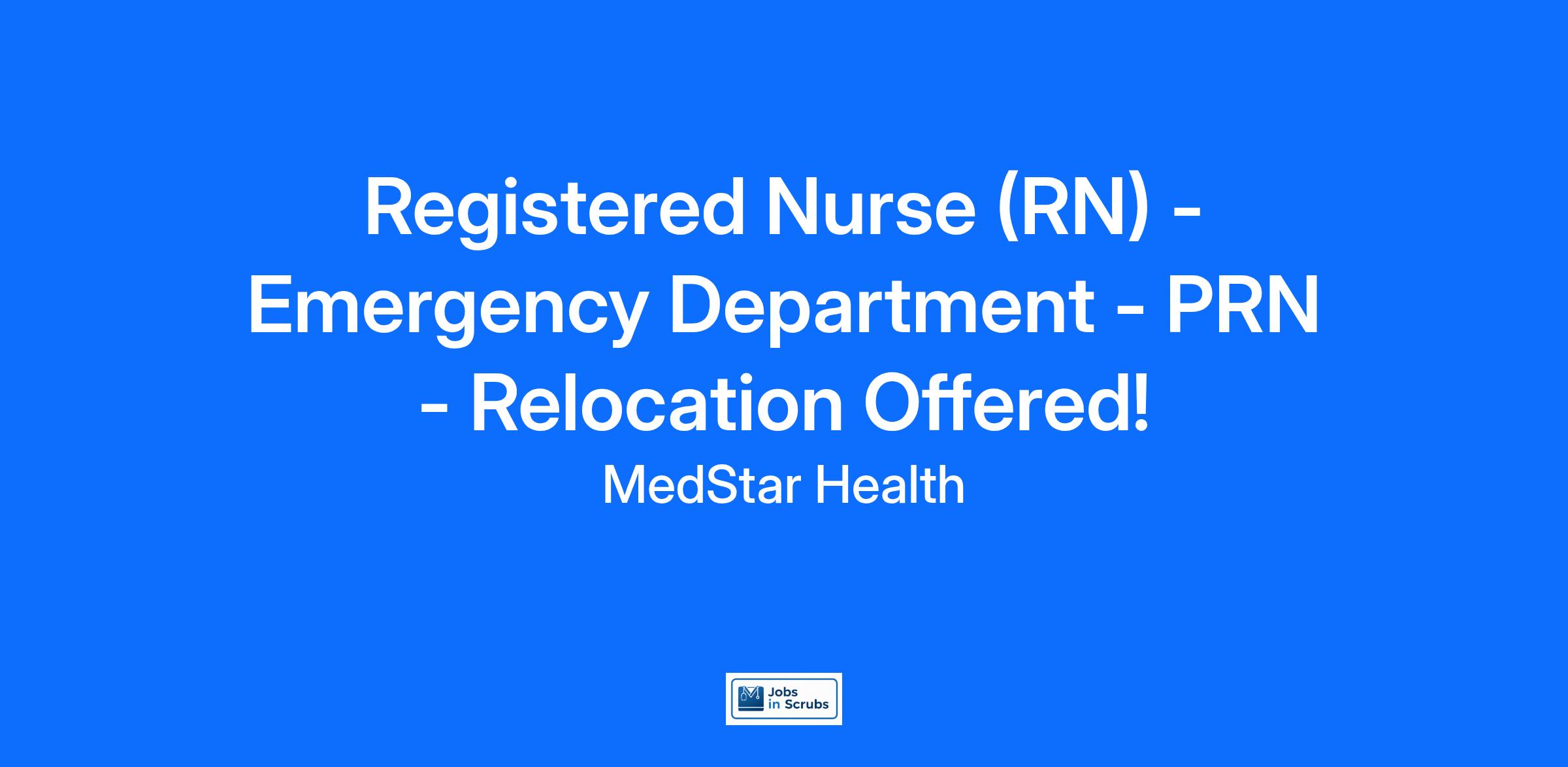 Registered Nurse (RN) - Emergency Department - PRN - Relocation Offered!