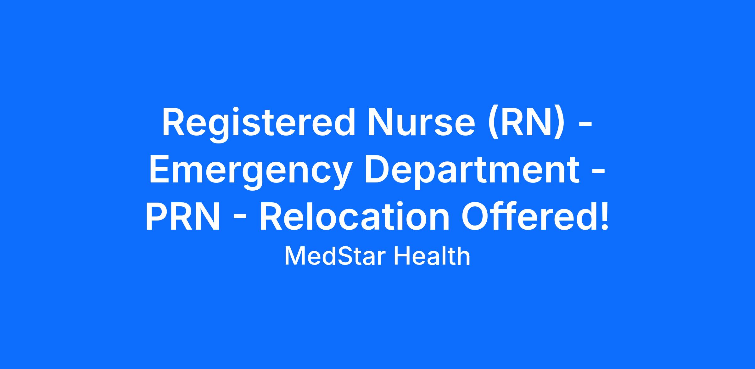 Registered Nurse (RN) - Emergency Department - PRN - Relocation Offered!