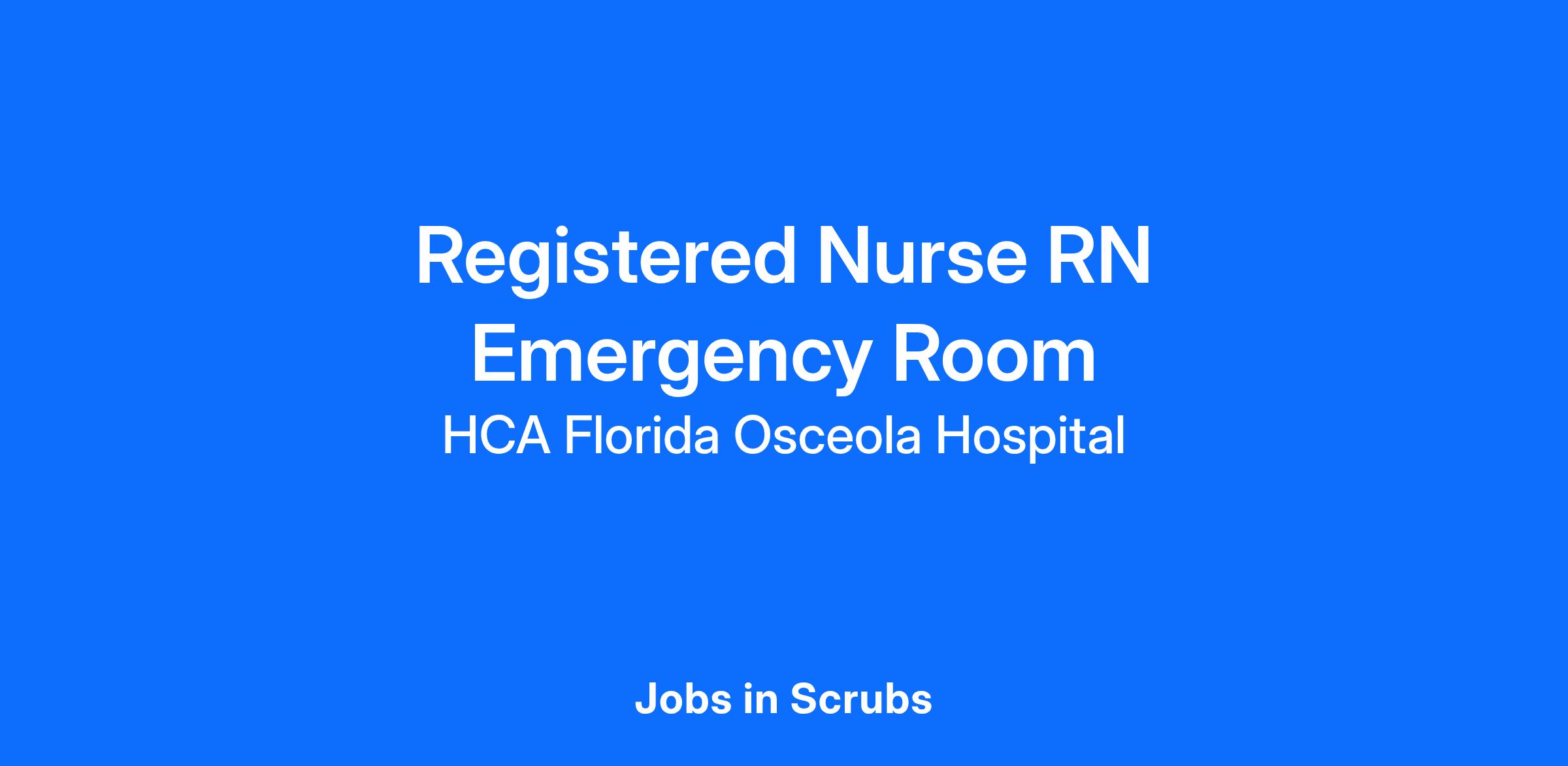 Are you passionate about the patient experience? At HCA Healthcare, we are committed to caring for patients with purpose and integrity. We care like family! Jump-start your career as a(an) Registered Nurse RN Emergency Room today with HCA Florida Osceola Hospital.