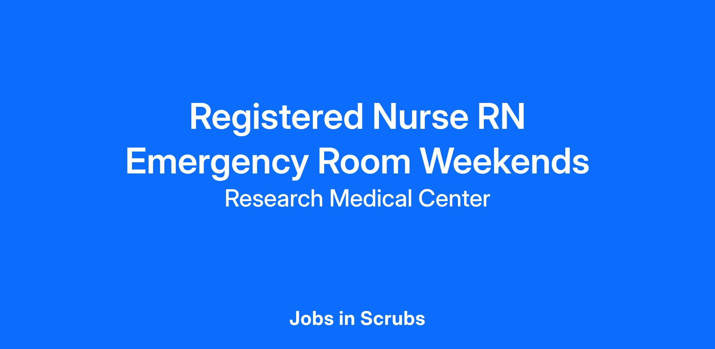 Do you want to be appreciated daily? Our nurses are celebrated for being on the front line, empathetic for patients. At Research Medical Center our nurses set us apart from any other healthcare provider. We are seeking a Registered Nurse RN for our Emergency Room on the weekends to join our healthcare family.