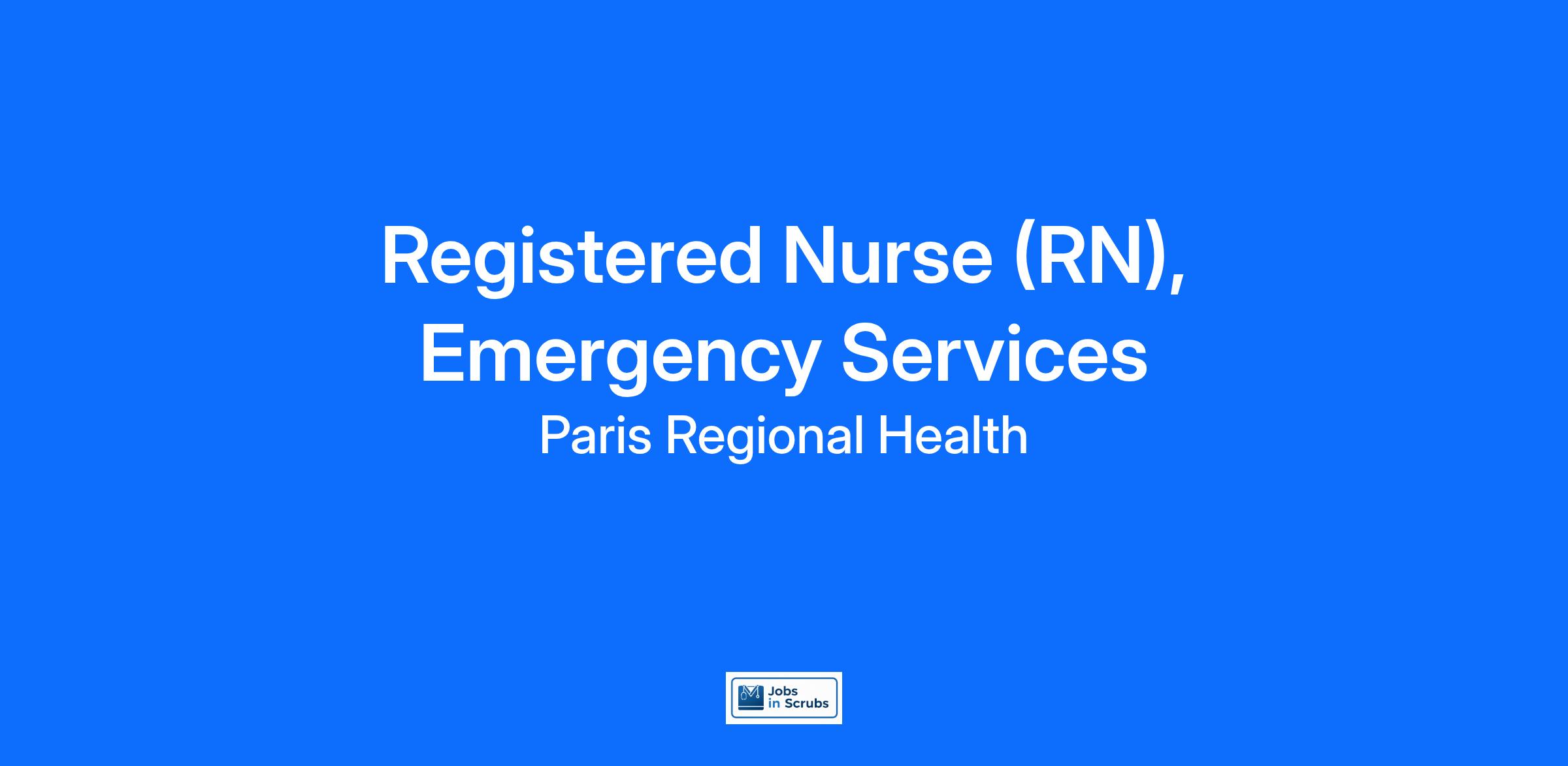 At Paris Regional, we are driven by a profound commitment to prioritize your well-being so you can provide exceptional care to others. Here, you're not just valued as an employee, but as a person. As a Registered Nurse (RN) joining our team, you're embracing a vital mission dedicated to making communities healthier. Join us on this meaningful journey where your skills, compassion, and dedication will make a remarkable difference in the lives of those we serve.