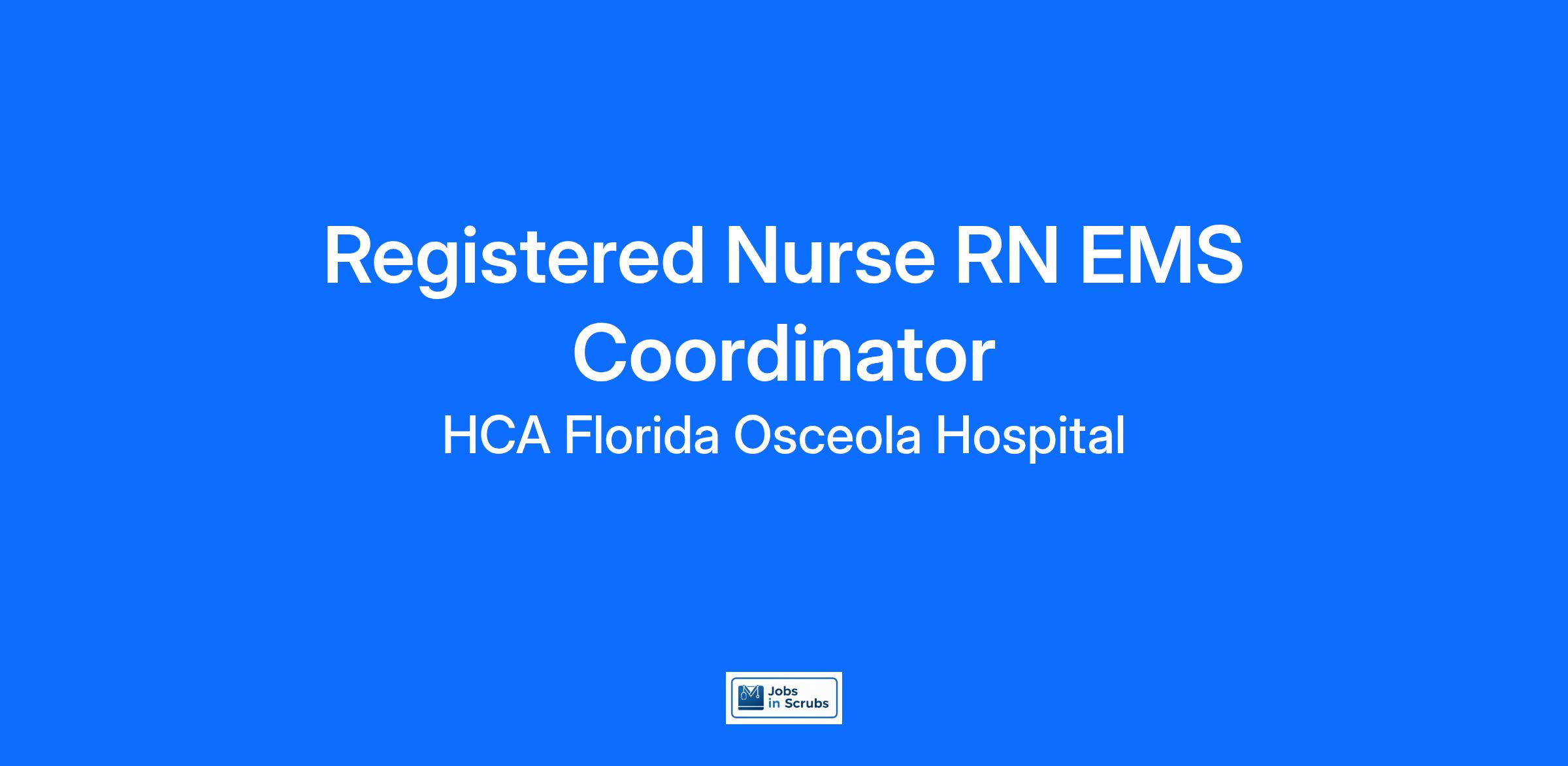 Are you passionate about the patient experience? At HCA Healthcare, we are committed to caring for patients with purpose and integrity. We care like family! Jump-start your career as a(an) Registered Nurse RN EMS Coordinator today with HCA Florida Osceola Hospital.