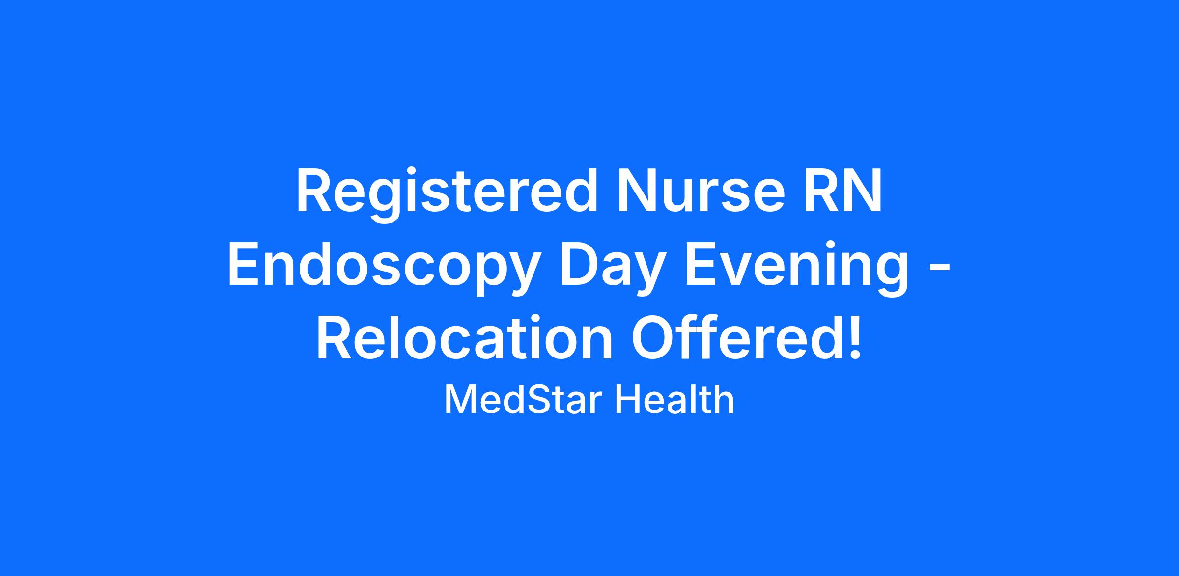 Registered Nurse RN Endoscopy Day Evening - Relocation Offered!