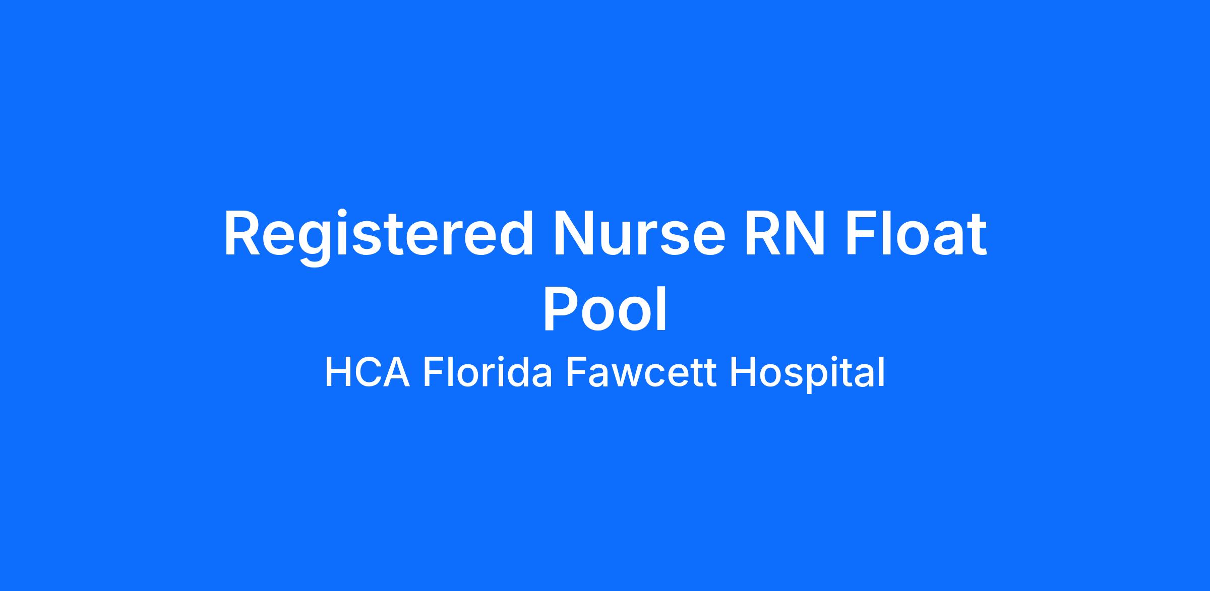 Are you looking for a place to deliver excellent care patients deserve? At HCA Florida Fawcett Hospital we support our colleagues in their positions. Join our Team as a(an) Registered Nurse RN Float Pool and access programs to assist with every stage of your career.
