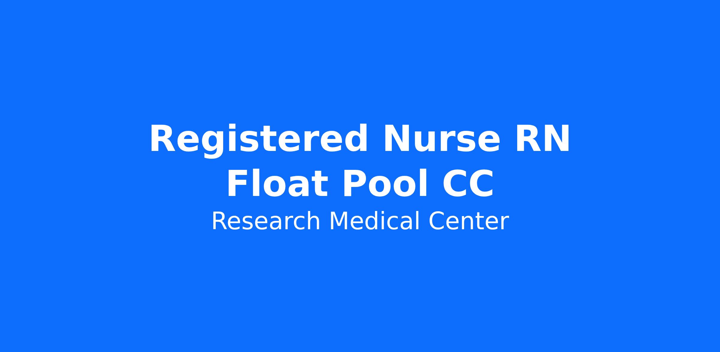 Do you want to be appreciated daily? Our nurses are celebrated for being on the front line, empathetic for patients. At Research Medical Center our nurses set us apart from any other healthcare provider. We are seeking a(an) Registered Nurse RN Float Pool CC to join our healthcare family.