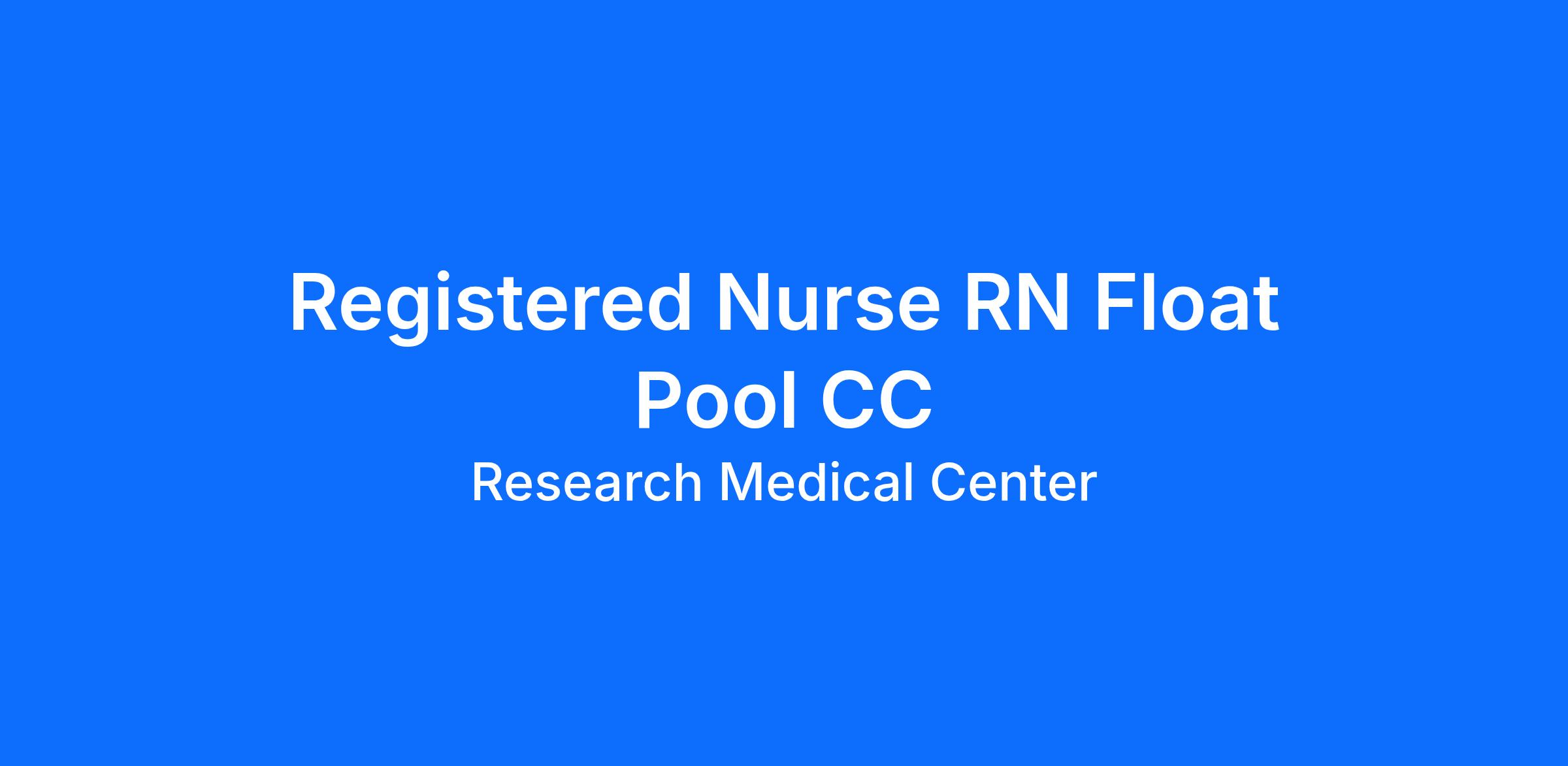 Do you want to be appreciated daily? Our nurses are celebrated for being on the front line, empathetic for patients. At Research Medical Center our nurses set us apart from any other healthcare provider. We are seeking a(an) Registered Nurse RN Float Pool CC to join our healthcare family.