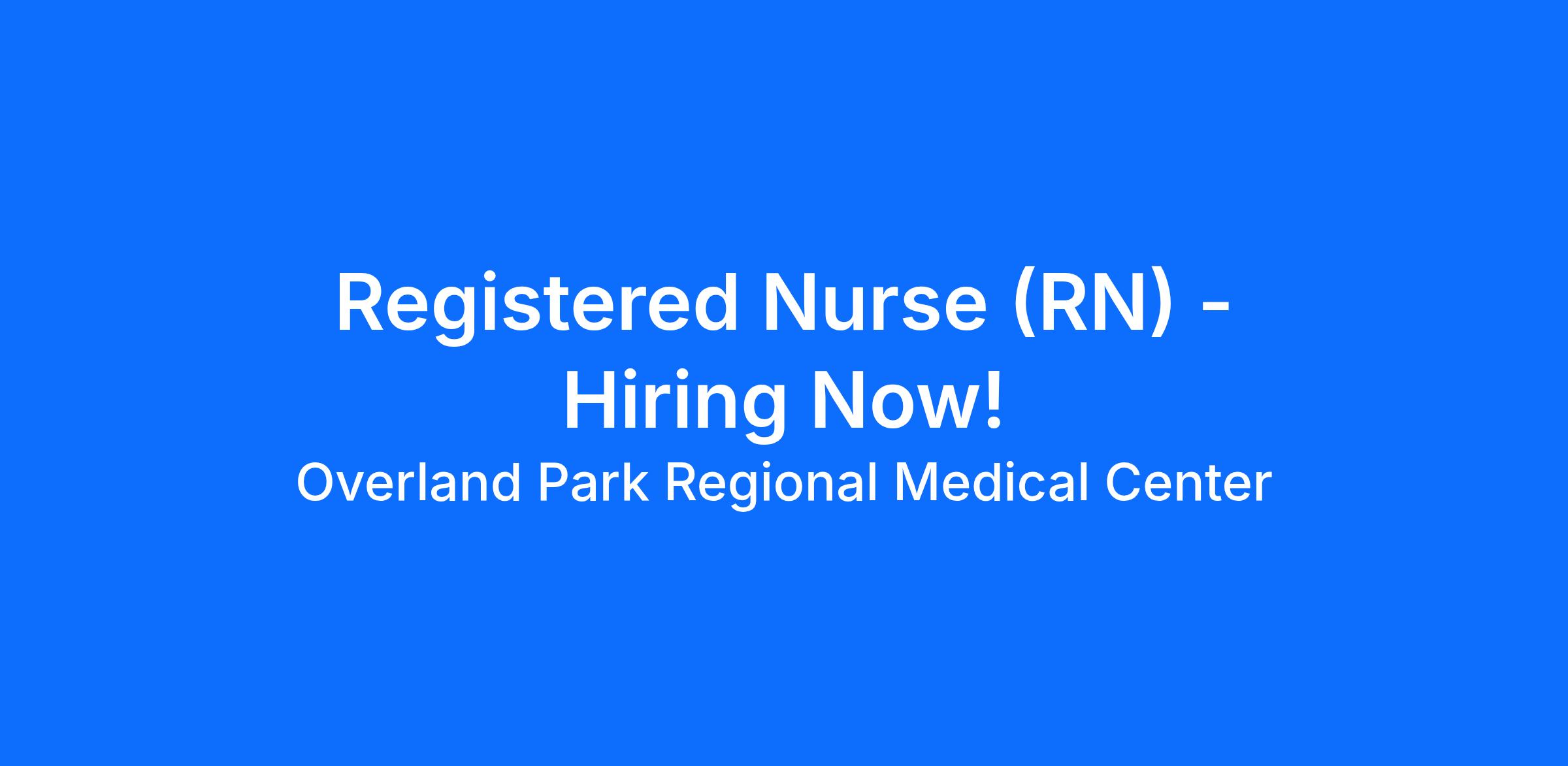 Are you looking for a place to deliver excellent care patients deserve? At Overland Park Regional Medical Center we support our colleagues in their positions. Join our Team as a(an) Registered Nurse Cardiac Specialty and access programs to assist with every stage of your career.