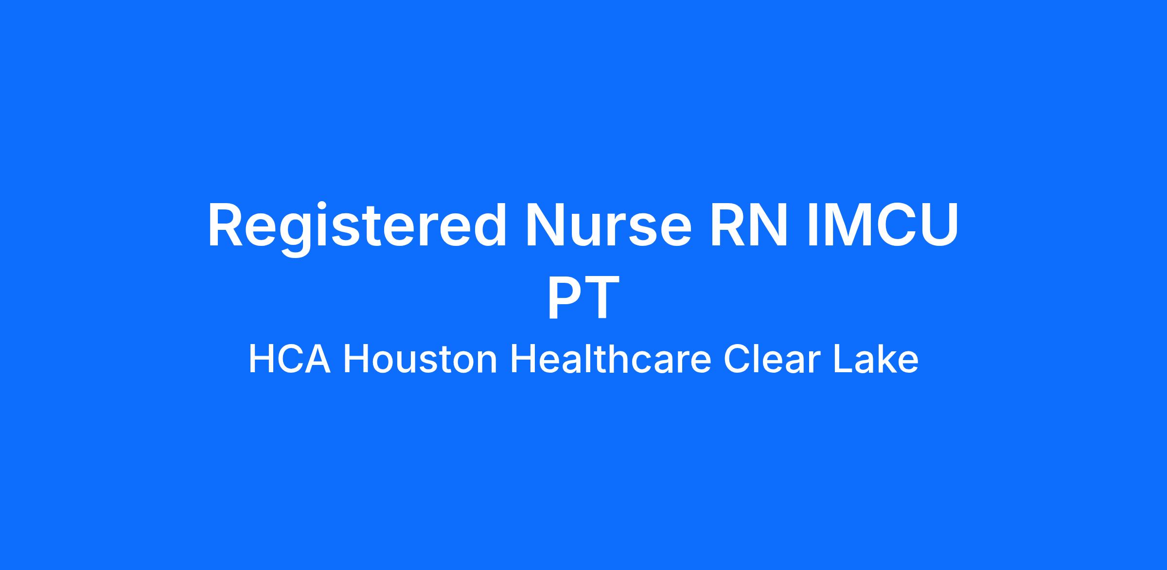 Are you looking for a place to deliver excellent care patients deserve? At HCA Houston Healthcare Clear Lake we support our colleagues in their positions. Join our Team as a(an) Registered Nurse RN IMCU (Part-Time) and access programs to assist with every stage of your career.