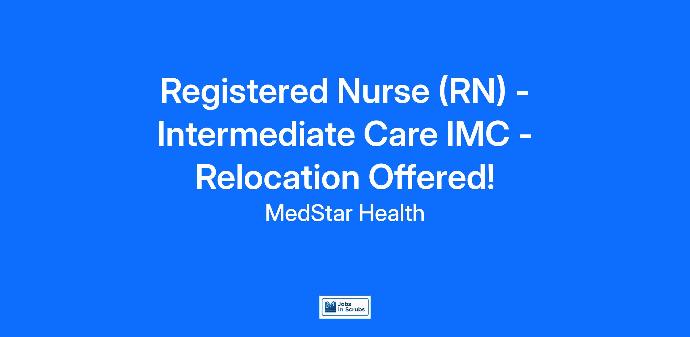 Registered Nurse (RN) - Intermediate Care IMC - Relocation Offered!