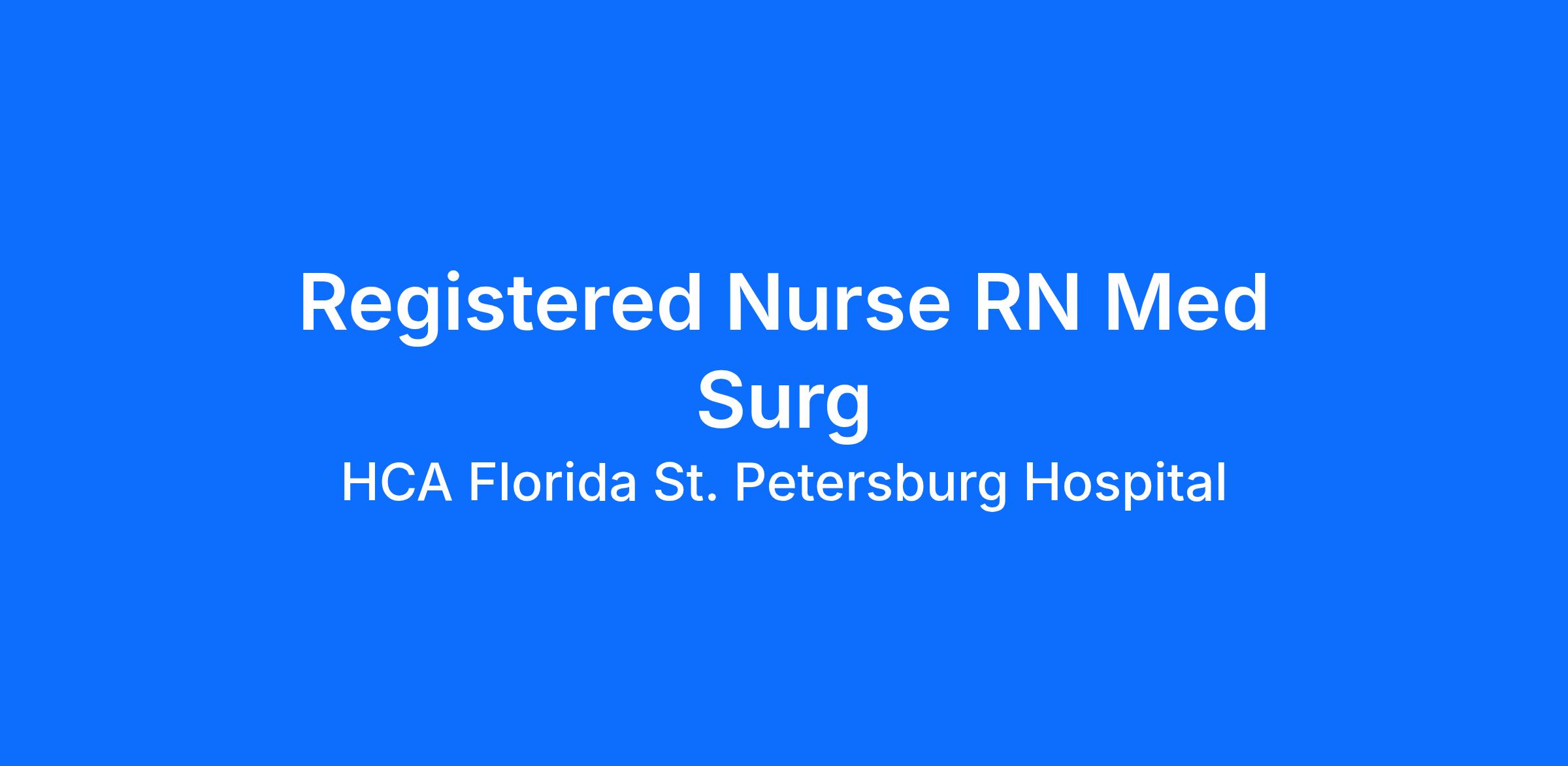Are you looking for a place to deliver excellent care patients deserve? At HCA Florida St. Petersburg Hospital we support our colleagues in their positions. Join our Team as a(an) Registered Nurse RN Med Surg and access programs to assist with every stage of your career.