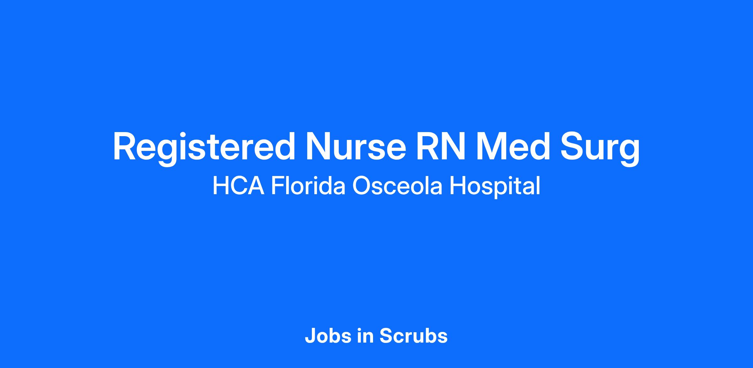 Are you passionate about the patient experience? At HCA Healthcare, we are committed to caring for patients with purpose and integrity. We care like family! Jump-start your career as a(an) Registered Nurse RN Med Surg today with HCA Florida Osceola Hospital.