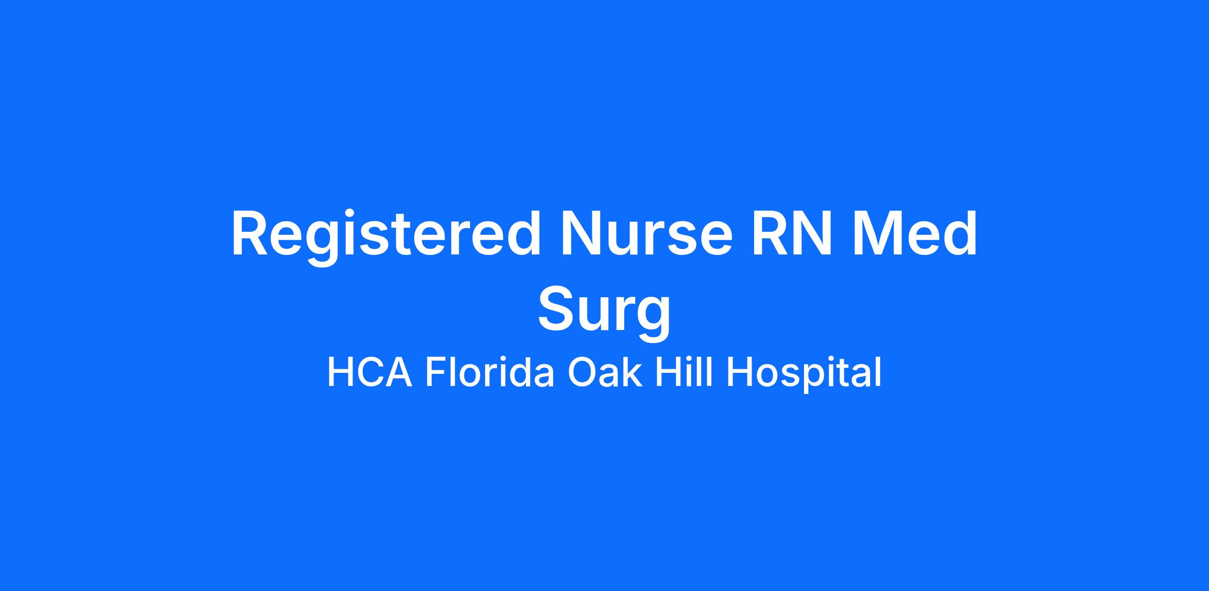 Are you looking for a place to deliver excellent care patients deserve? At HCA Florida Oak Hill Hospital we support our colleagues in their positions. Join our Team as a(an) Registered Nurse RN Med Surg and access programs to assist with every stage of your career.