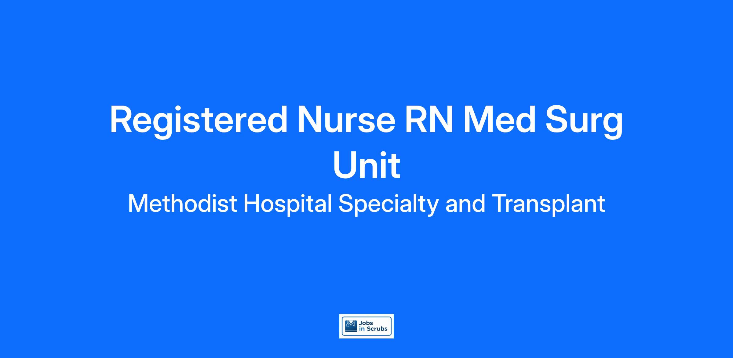 Do you want to be appreciated daily? Our nurses are celebrated for being on the front line, empathetic for patients. At Methodist Hospital Specialty and Transplant our nurses set us apart from any other healthcare provider. We are seeking a(an) Registered Nurse RN Med Surg Unit to join our healthcare family.