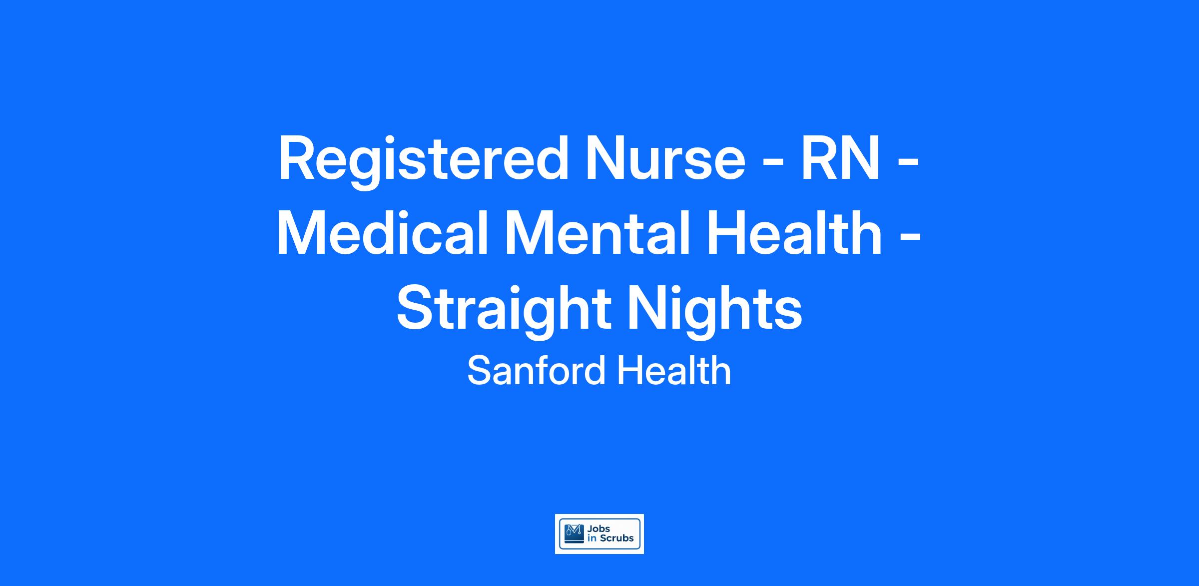 Registered Nurse - RN - Medical Mental Health - Straight Nights