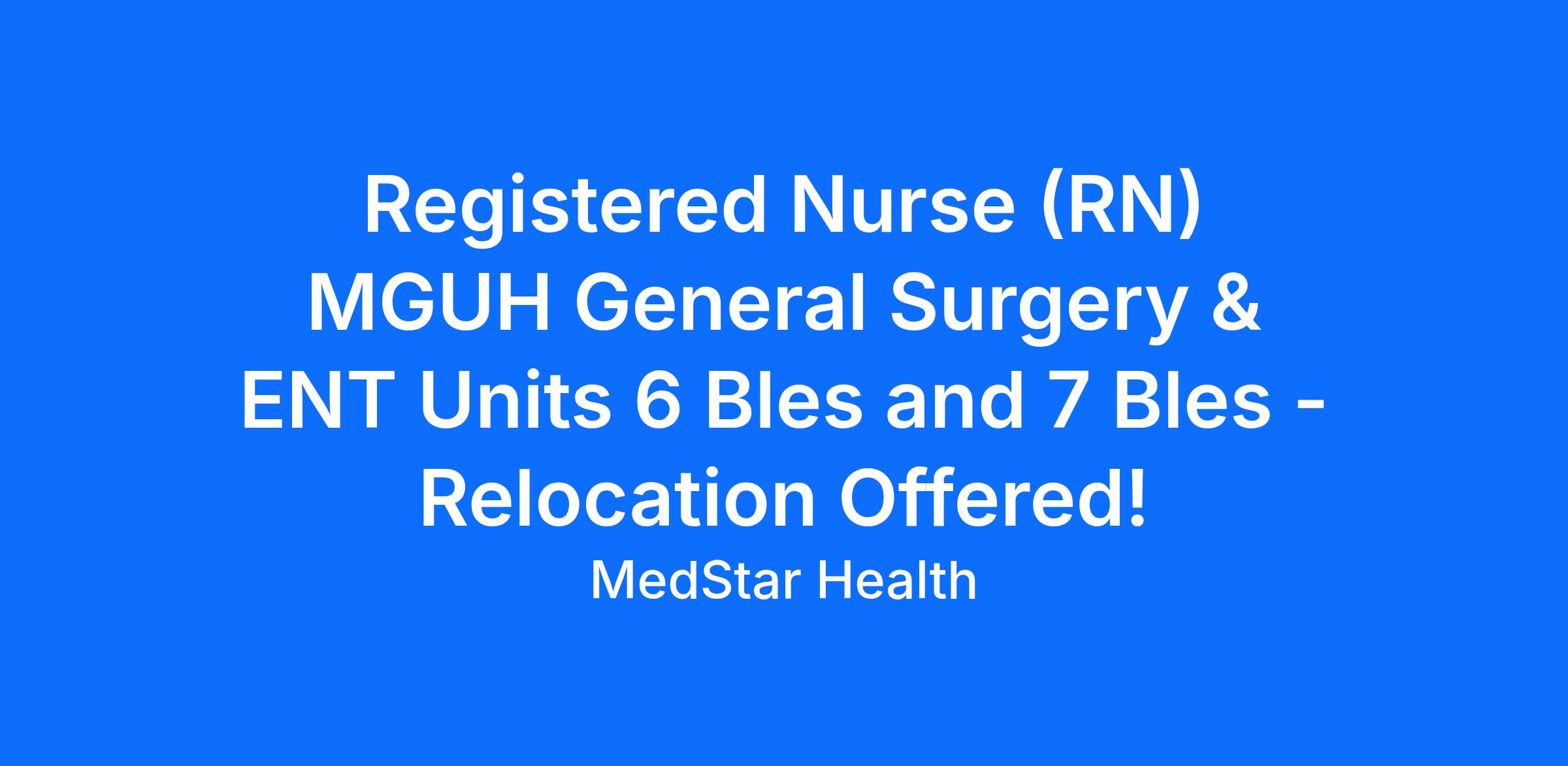 - Systemwide referral bonus program—up to $6,000 for each RN and up to $4,000 for each LPN that joins MedStar Health