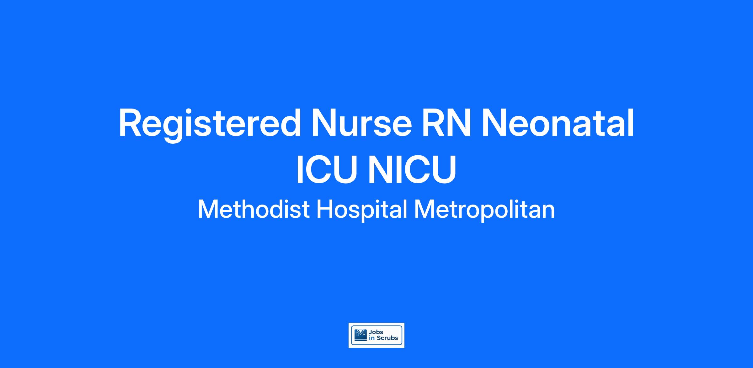Are you looking for a place to deliver excellent care patients deserve? At Methodist Hospital Metropolitan we support our colleagues in their positions. Join our Team as a(an) Registered Nurse RN Neonatal ICU NICU and access programs to assist with every stage of your career.