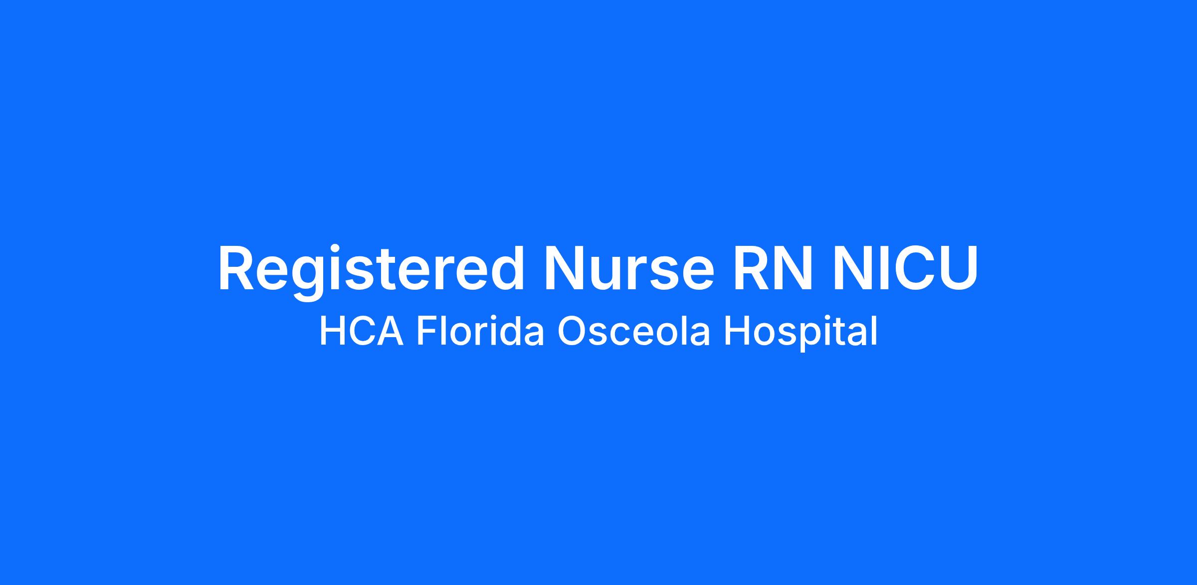 Are you passionate about the patient experience? At HCA Healthcare, we are committed to caring for patients with purpose and integrity. We care like family! Jump-start your career as a(an) Registered Nurse RN NICU today with HCA Florida Osceola Hospital.