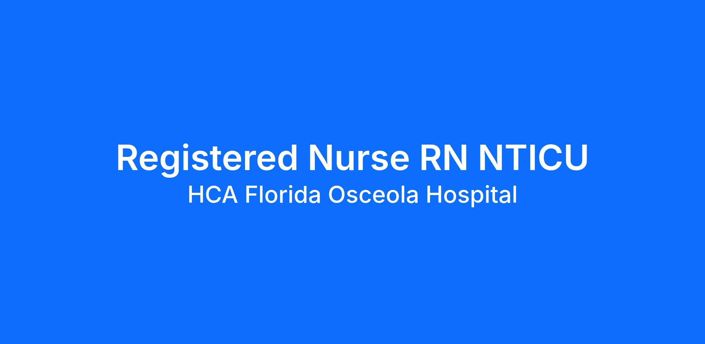Are you passionate about the patient experience? At HCA Healthcare, we are committed to caring for patients with purpose and integrity. We care like family! Jump-start your career as a(an) Registered Nurse RN NTICU today with HCA Florida Osceola Hospital.
